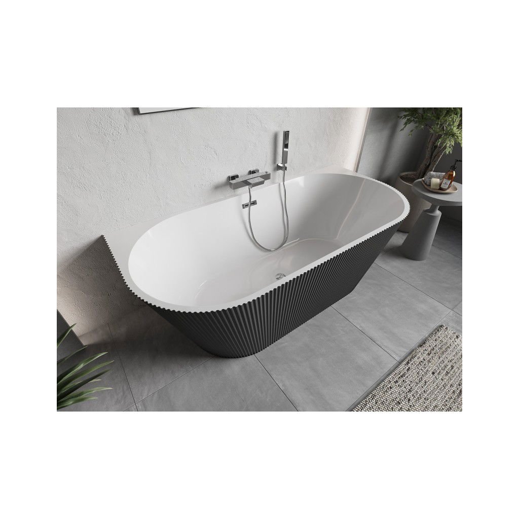 Mexen Oris, volně stojící rýhovaná vana 150 x 75 cm, bílá-šedá, chromový přepad, 52871507562-01