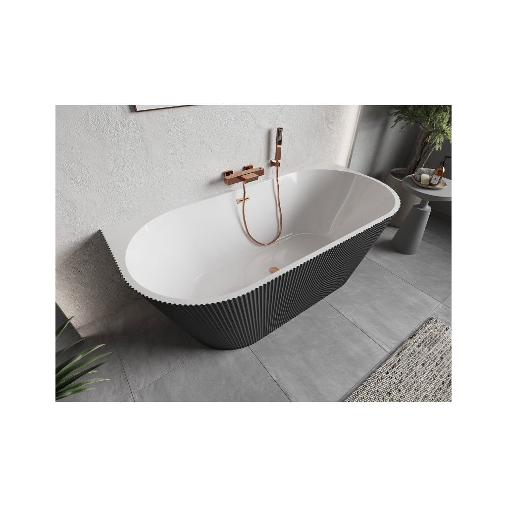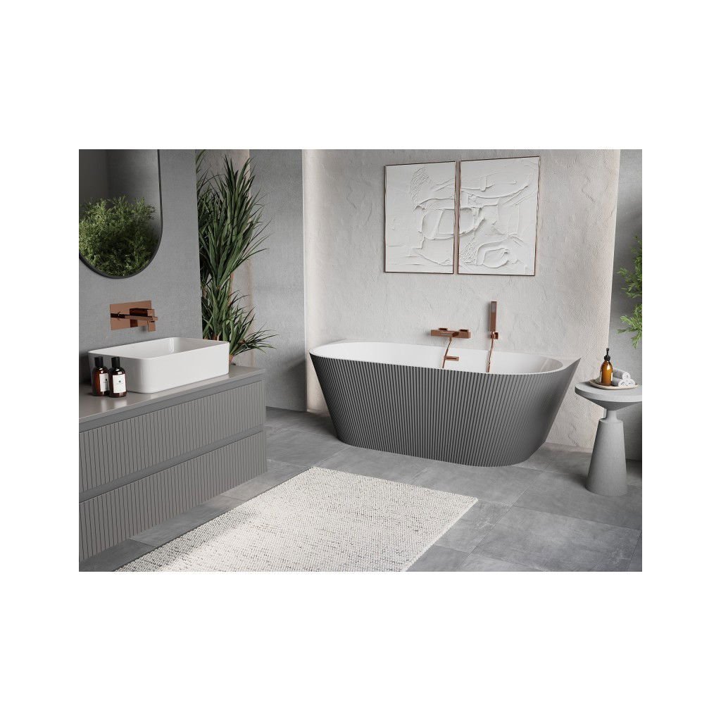 Mexen Oris, volně stojící rýhovaná vana 150 x 75 cm, bílá-šedá, měděný matný přepad, 52871507562-65