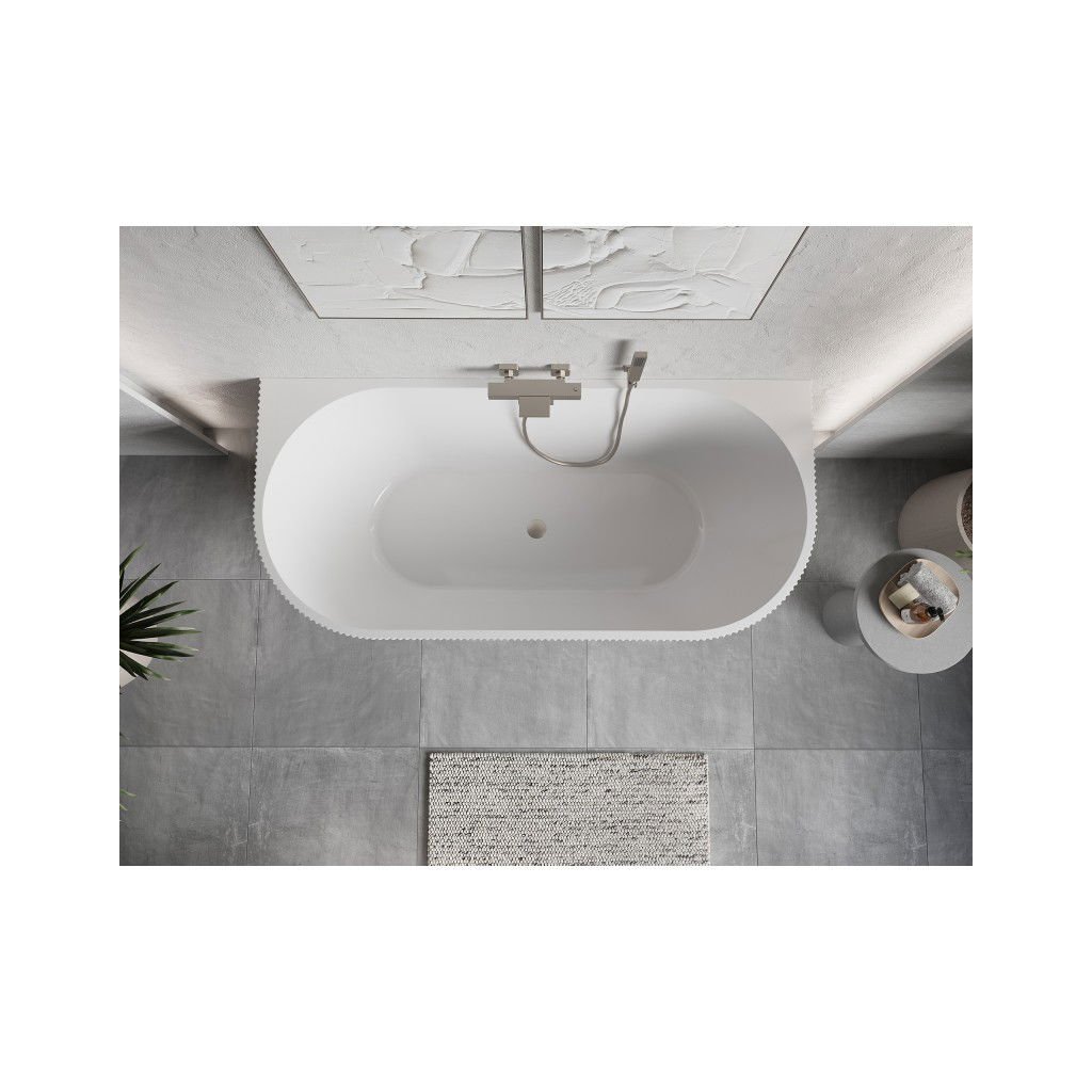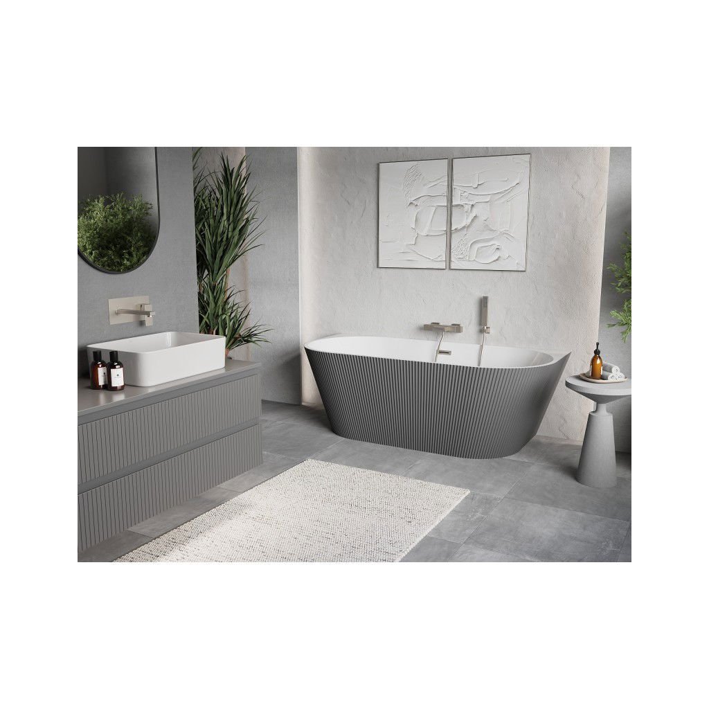 Mexen Oris, volně stojící rýhovaná vana 150 x 75 cm, bílá-šedá, ocelový přepad, 52871507562-97