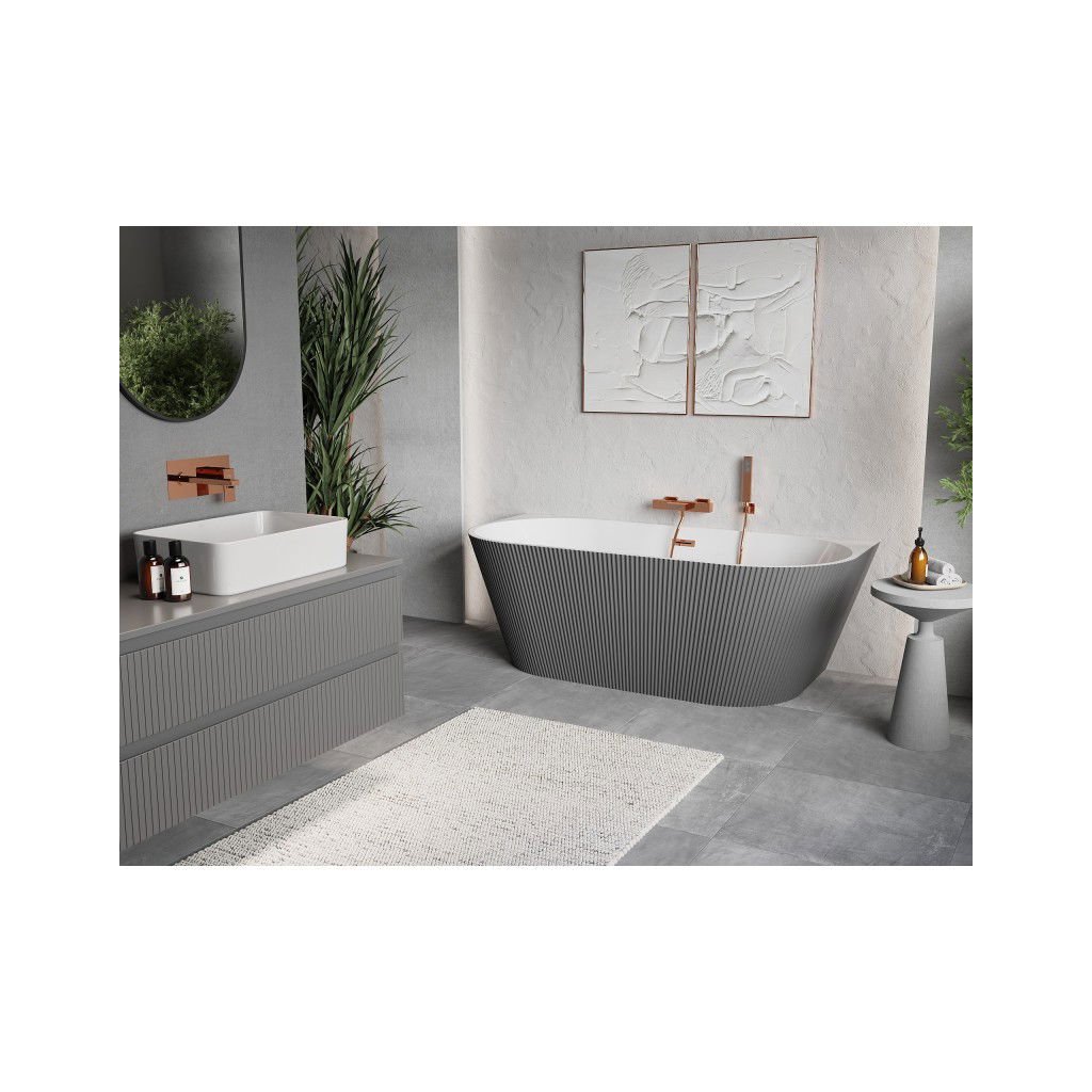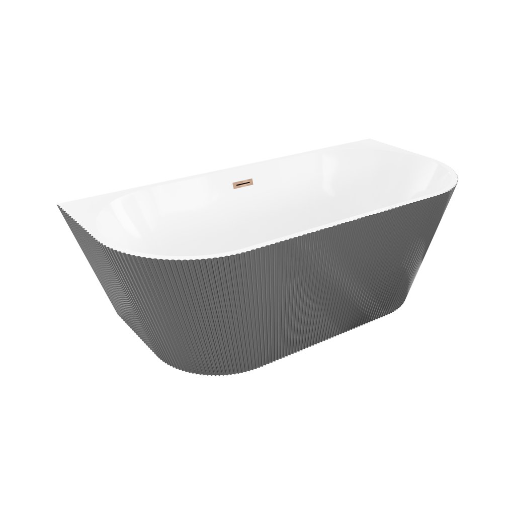Mexen Oris, volně stojící rýhovaná vana 150 x 75 cm, bílá-šedá, růžové zlato přepad, 52871507562-60