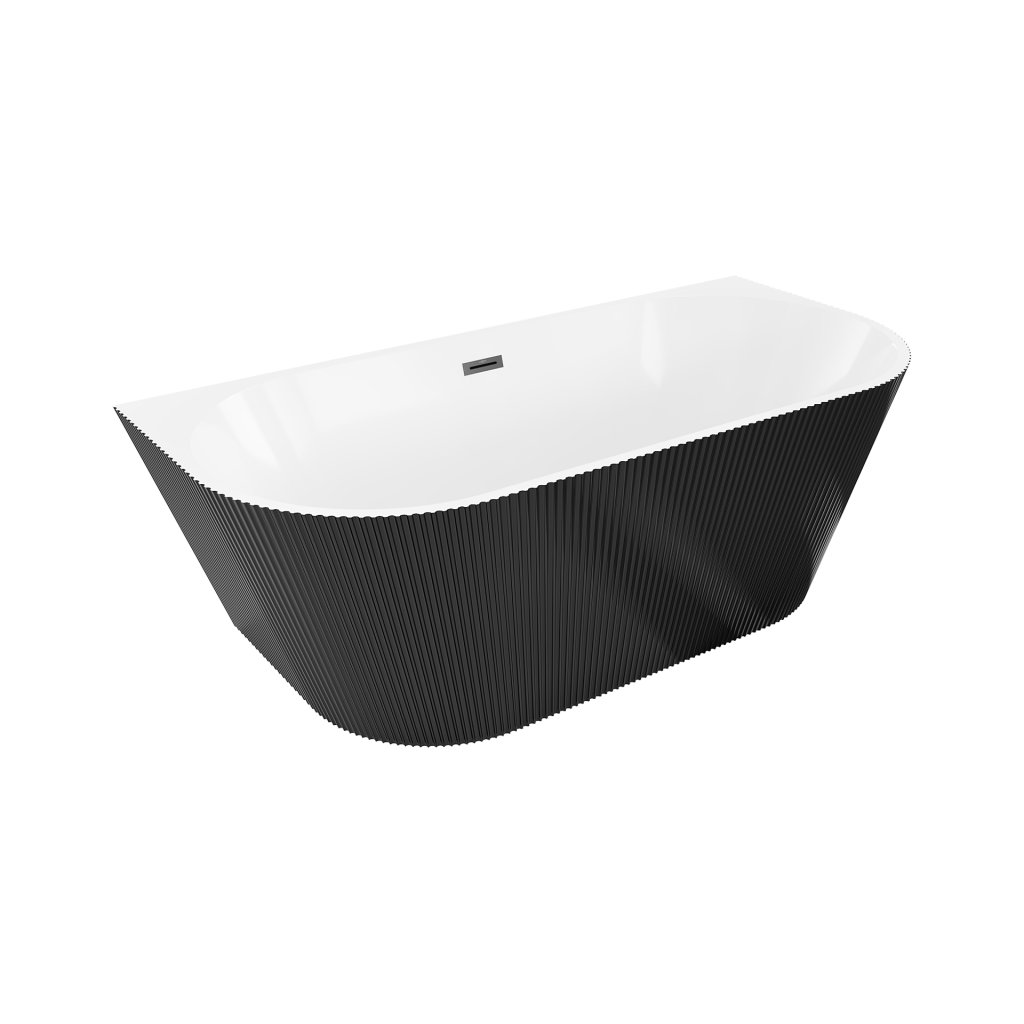 Mexen Oris, volně stojící rýhovaná vana 170 x 80 cm, bílá-černá, černý matný přepad, 52871708075-70
