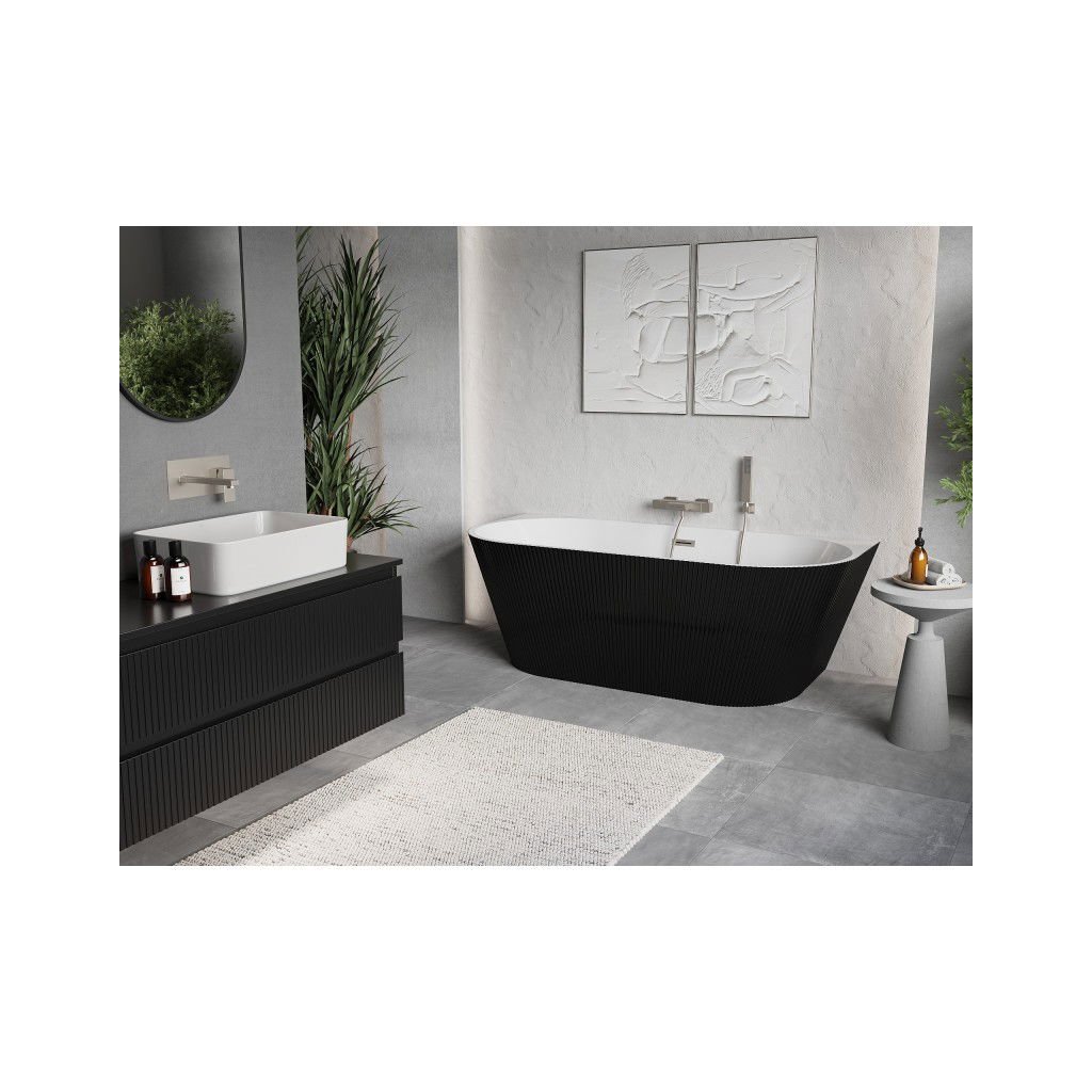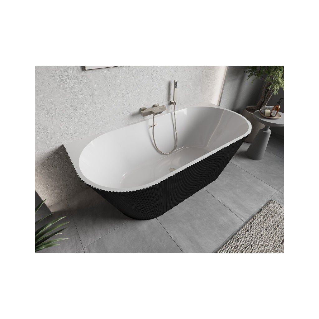 Mexen Oris, volně stojící rýhovaná vana 170 x 80 cm, bílá-černá, ocelový přepad, 52871708075-97