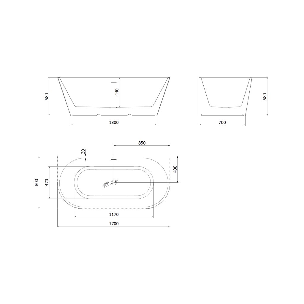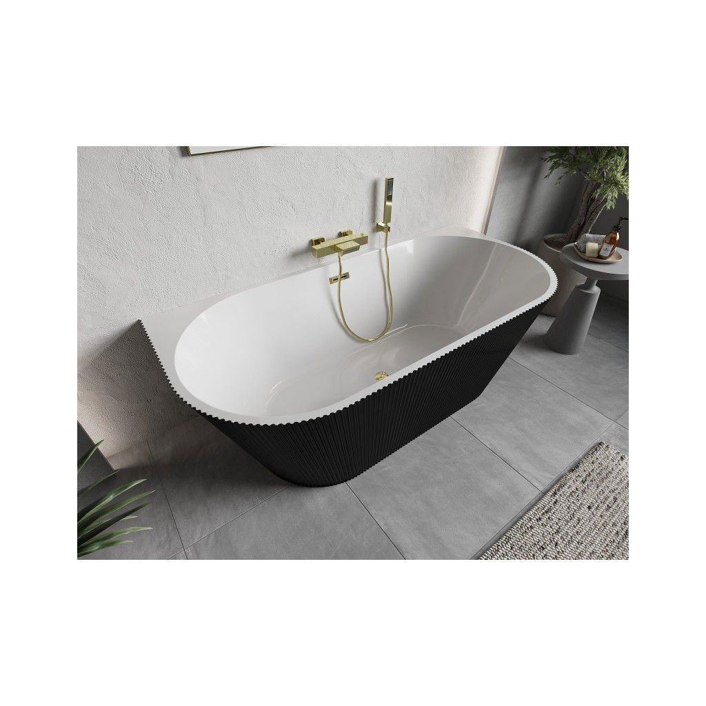 Mexen Oris, volně stojící rýhovaná vana 170 x 80 cm, bílá-černá, zlatý lesklý přepad, 52871708075-50