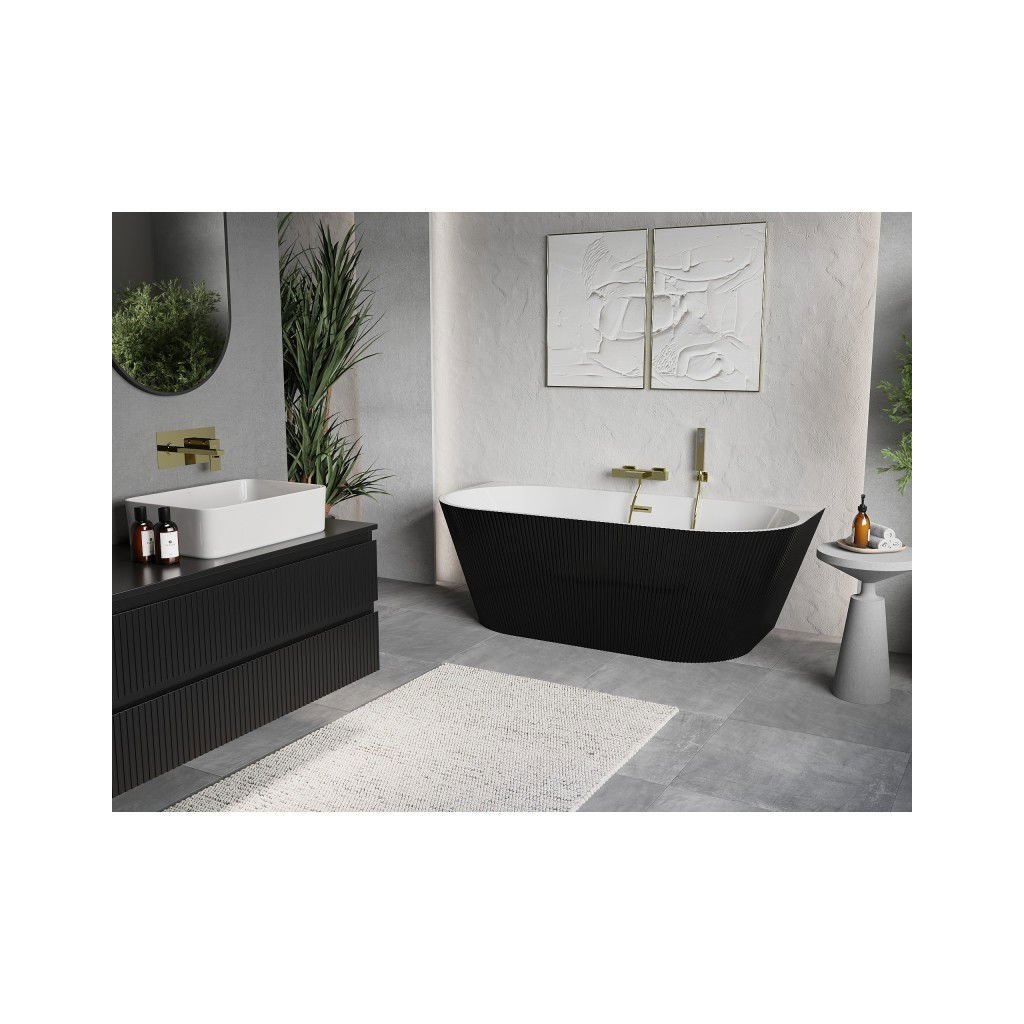 Mexen Oris, volně stojící rýhovaná vana 170 x 80 cm, bílá-černá, zlatý matný přepad, 52871708075-55