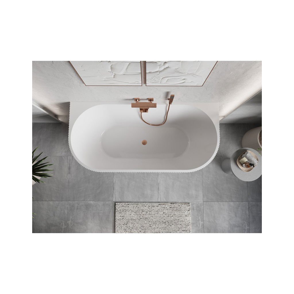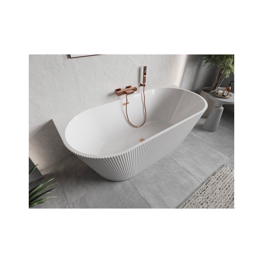 Mexen Oris, volně stojící rýhovaná vana 170 x 80 cm, bílá lesklá, měděný matný přepad, 52871708000-65