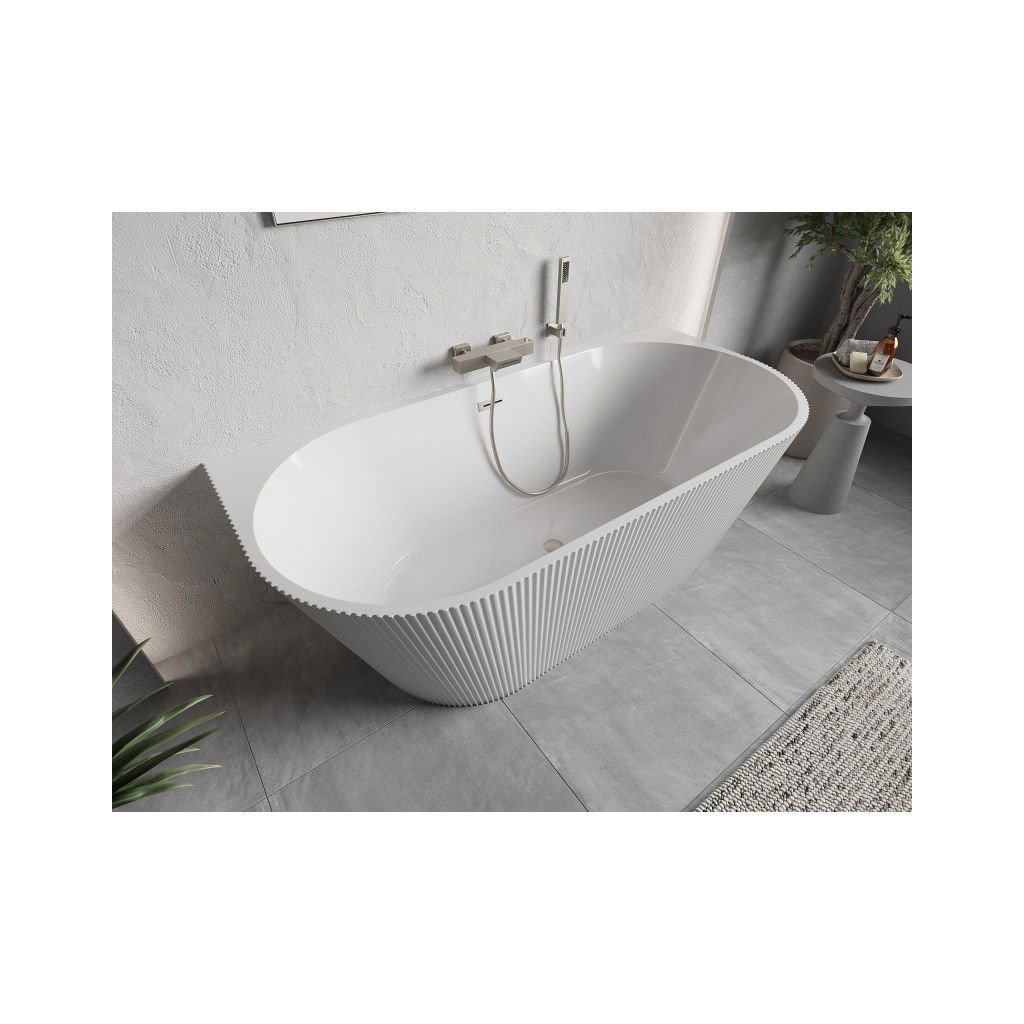 Mexen Oris, volně stojící rýhovaná vana 170 x 80 cm, bílá lesklá, ocelový přepad, 52871708000-97