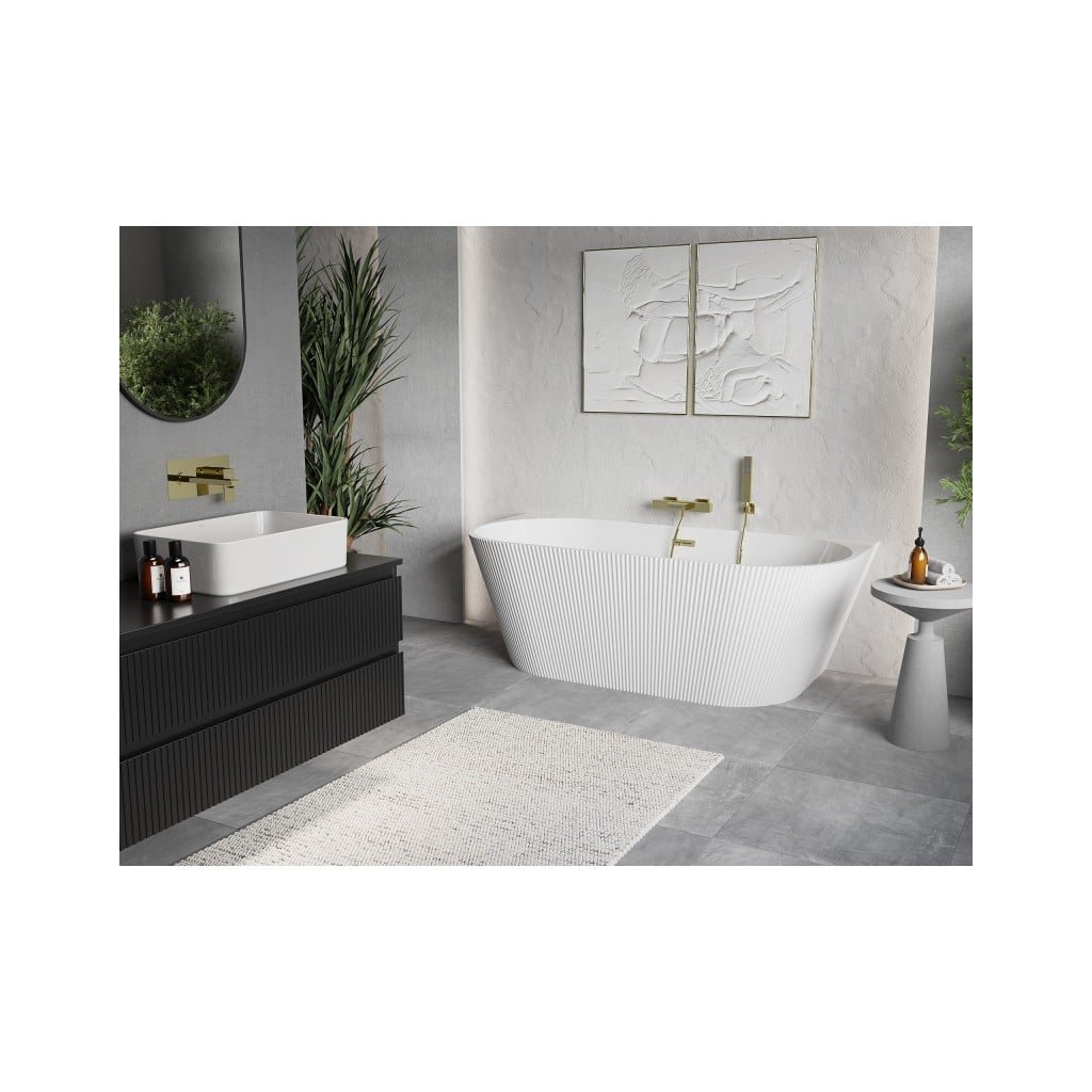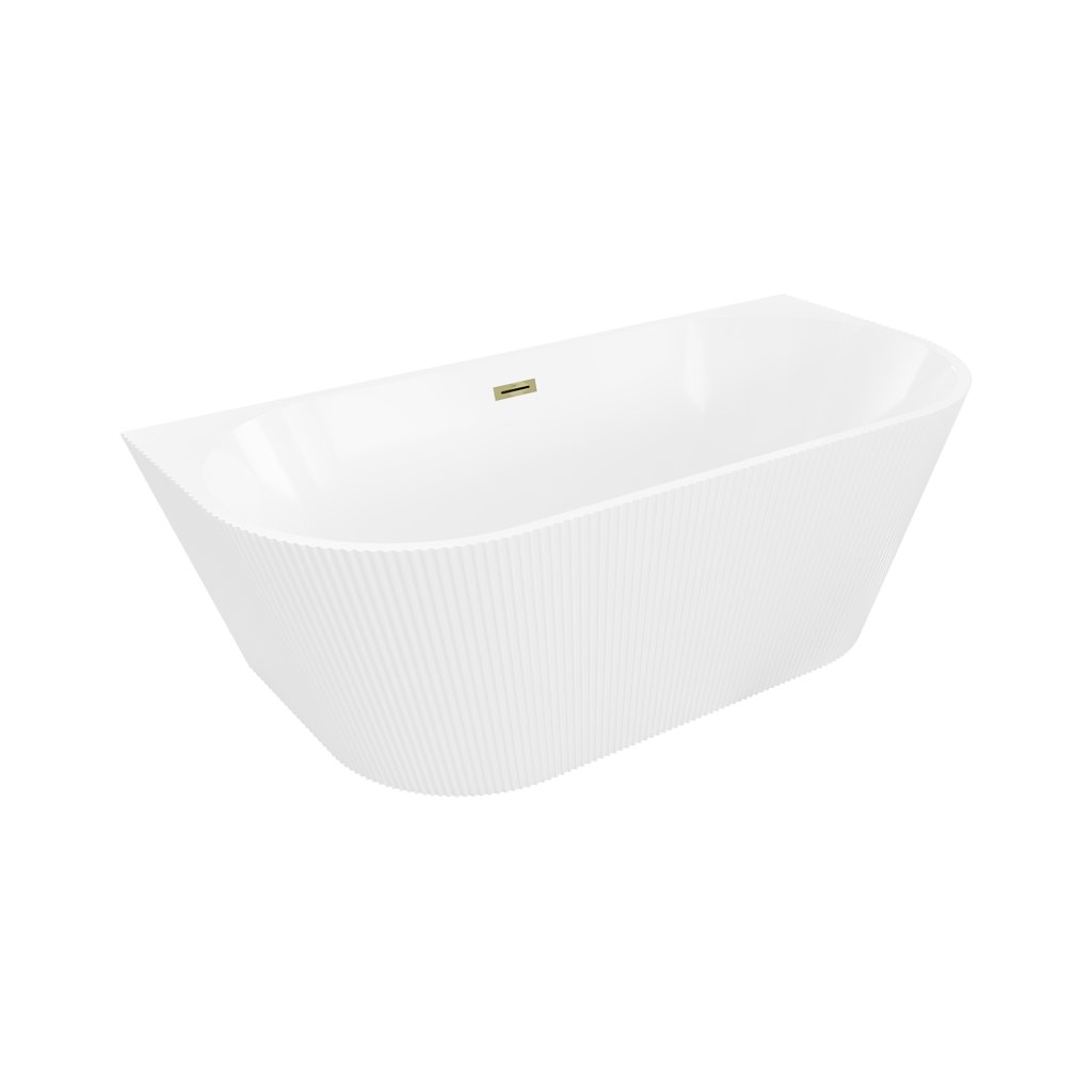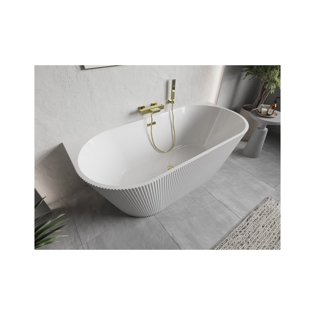 Mexen Oris, volně stojící rýhovaná vana 170 x 80 cm, bílá lesklá, zlatý lesklý přepad, 52871708000-50