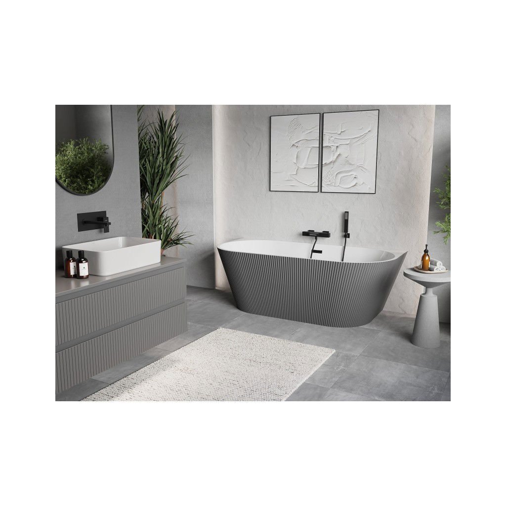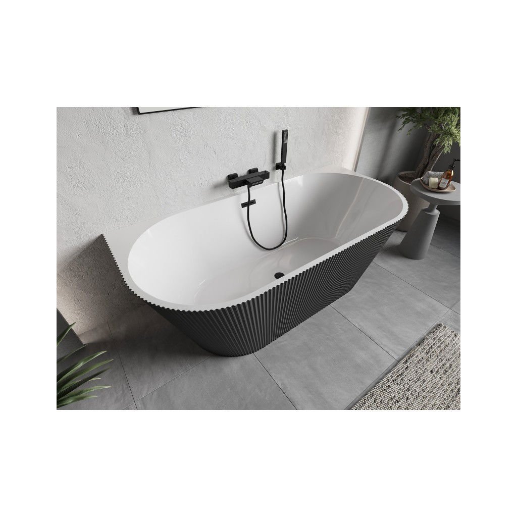Mexen Oris, volně stojící rýhovaná vana 170 x 80 cm, bílá-šedá, černý matný přepad, 52871708062-70