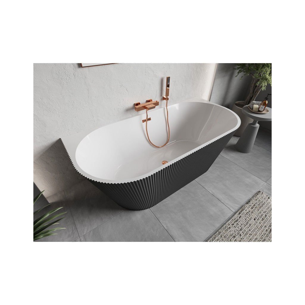 Mexen Oris, volně stojící rýhovaná vana 170 x 80 cm, bílá-šedá, růžové zlato přepad, 52871708062-60