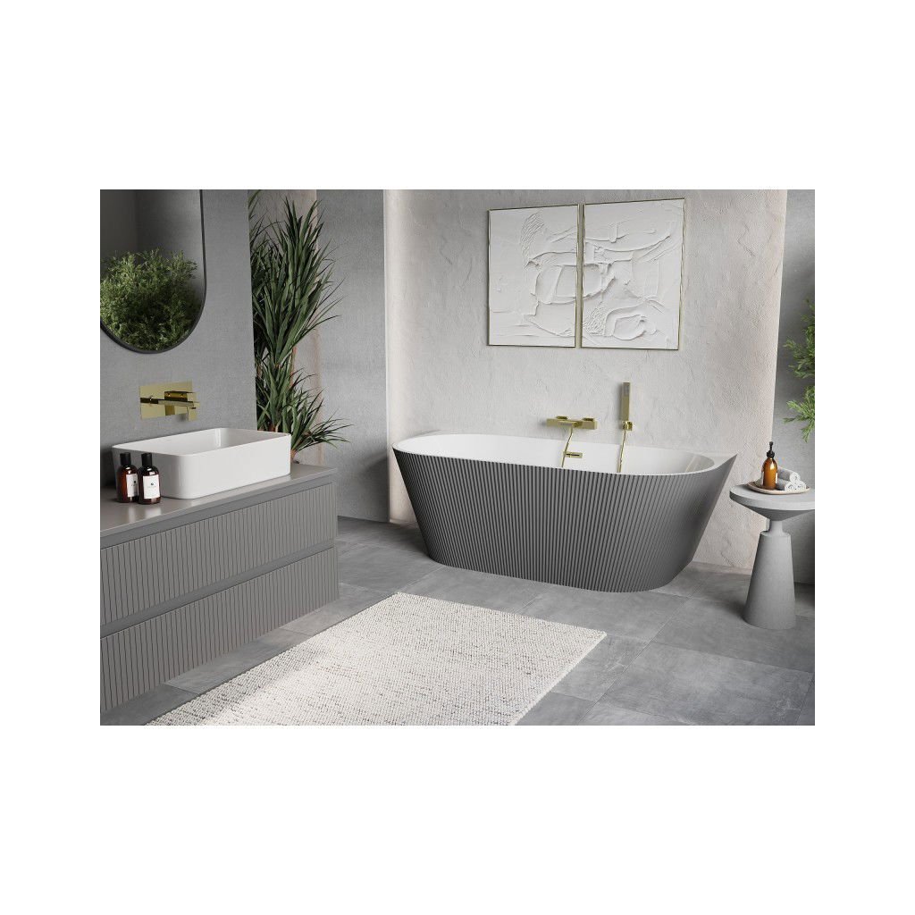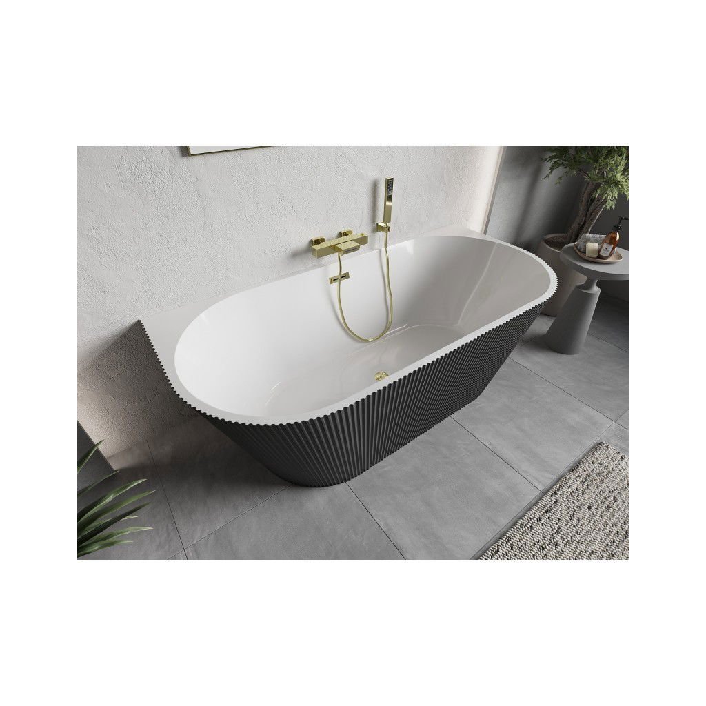 Mexen Oris, volně stojící rýhovaná vana 170 x 80 cm, bílá-šedá, zlatý lesklý přepad, 52871708062-50