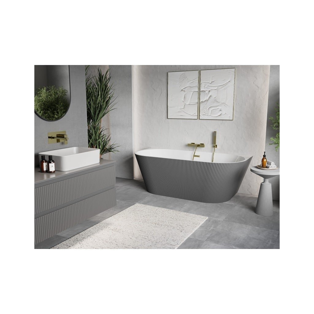 Mexen Oris, volně stojící rýhovaná vana 170 x 80 cm, bílá-šedá, zlatý matný přepad, 52871708062-55