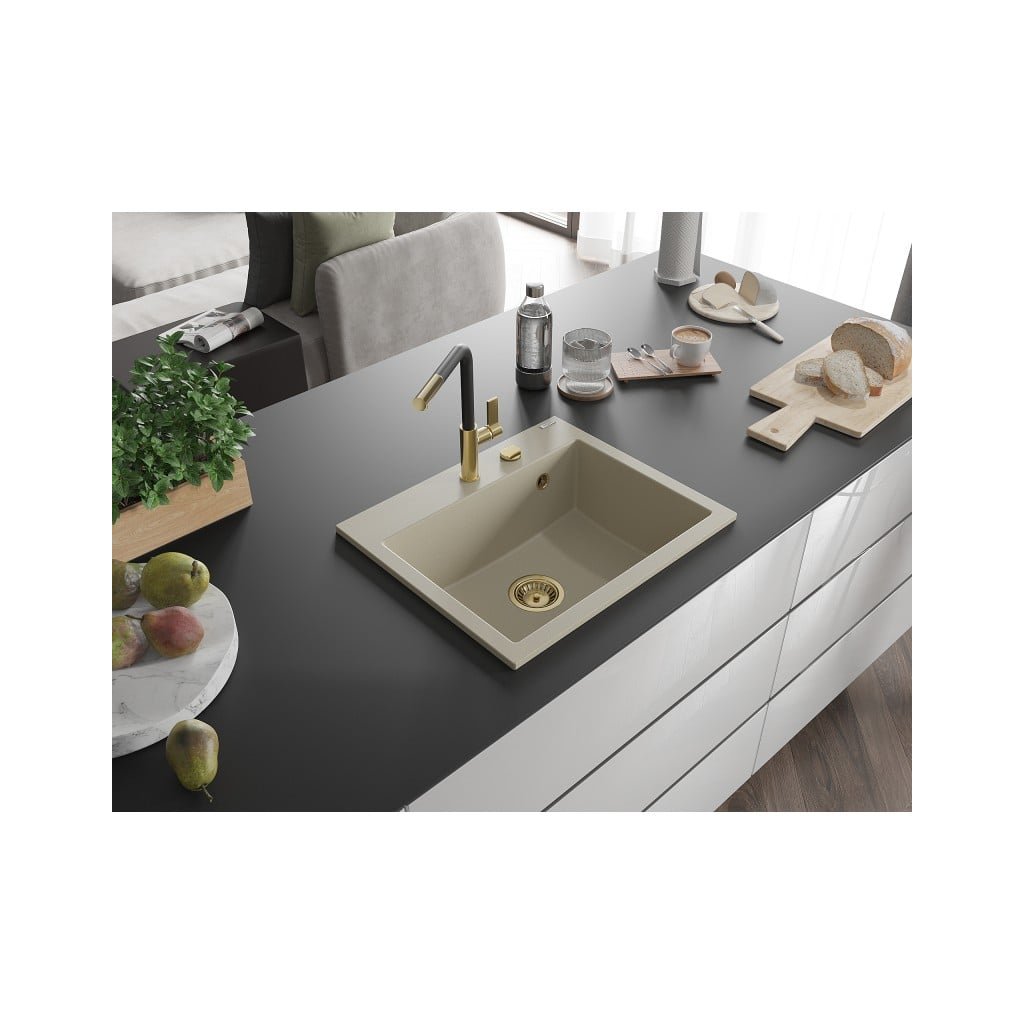 Mexen Oscar, 1-komorový granitový dřez 580x490x205 mm, béžová, 6519581000-69-G