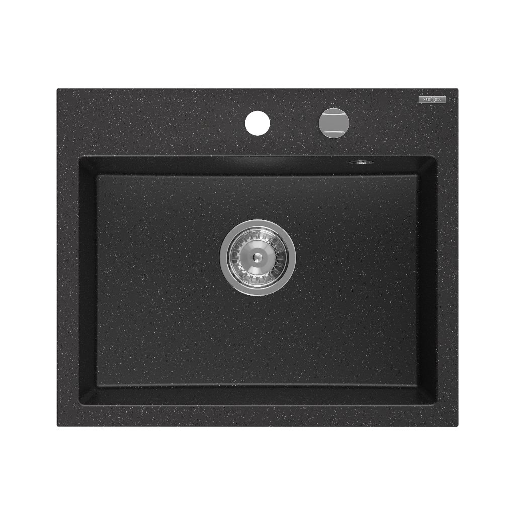 Mexen Oscar, 1-komorový granitový dřez 580x490x205 mm, černá-stříbrná metalíza, 6519581000-73