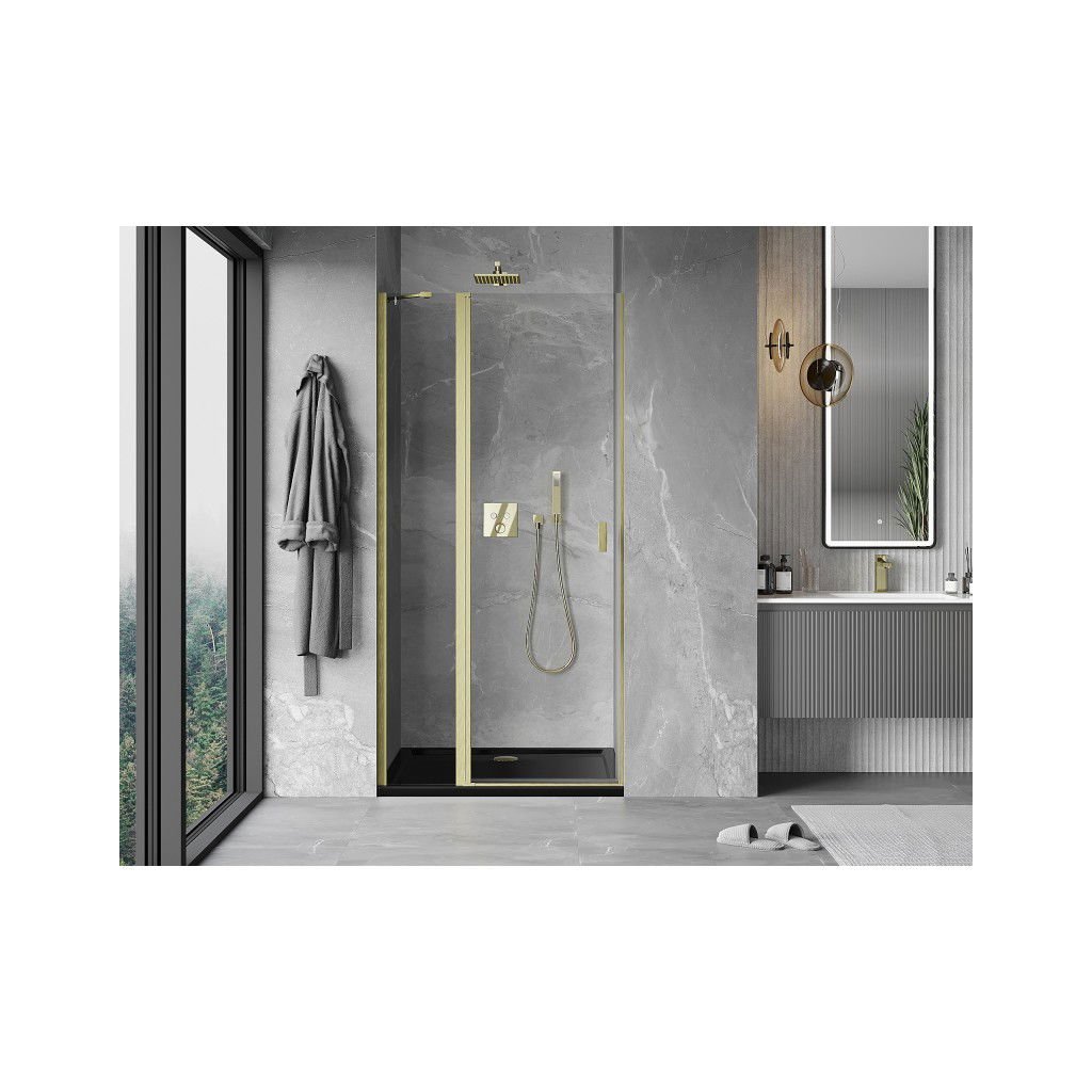 Mexen Otevírací sprchové dveře MIST (1d+1s) 90x200 cm 6mm broušené zlato, průhledné, 8A4-090-000-55-00