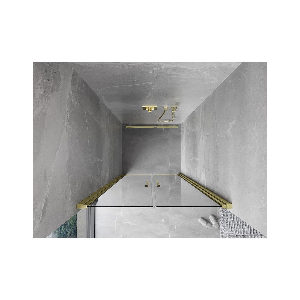 Mexen Otevírací sprchové dveře MIST (d+d) 100x200 cm 6 mm broušené zlato, průhledné, 8A7-100-000-55-00