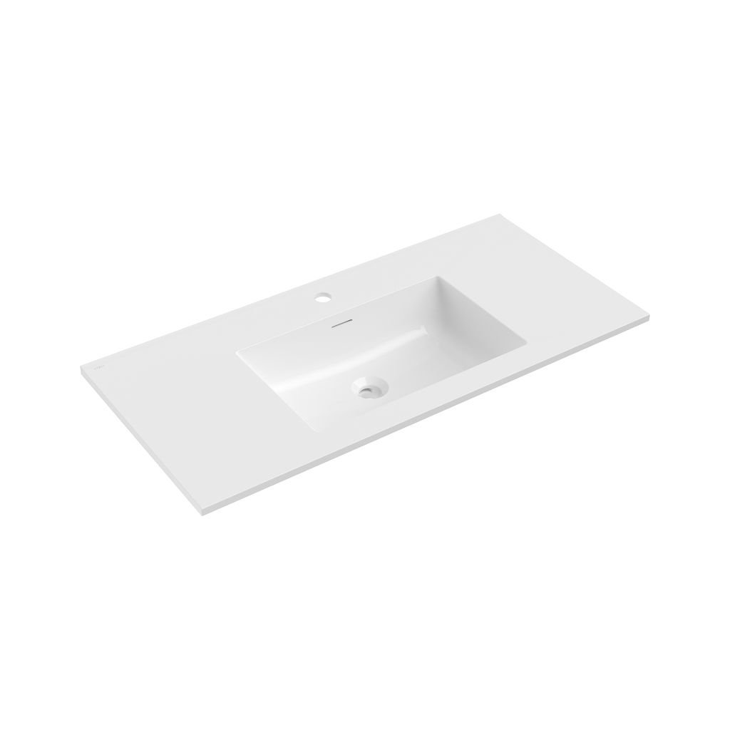 Technické údaje: Rozměry: 101x46,5x16,8 cm Hloubka: 11,9 cm Typ: Zapuštění do desky Barva: Bílý lesk Materiál: Konglomerát Přepadový otvor: Ano Otvor na baterii: AnoDoplňkové parametry