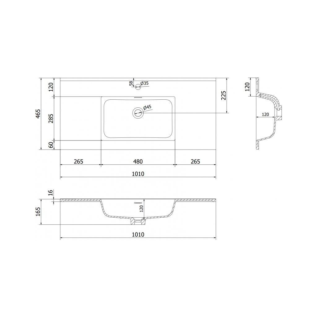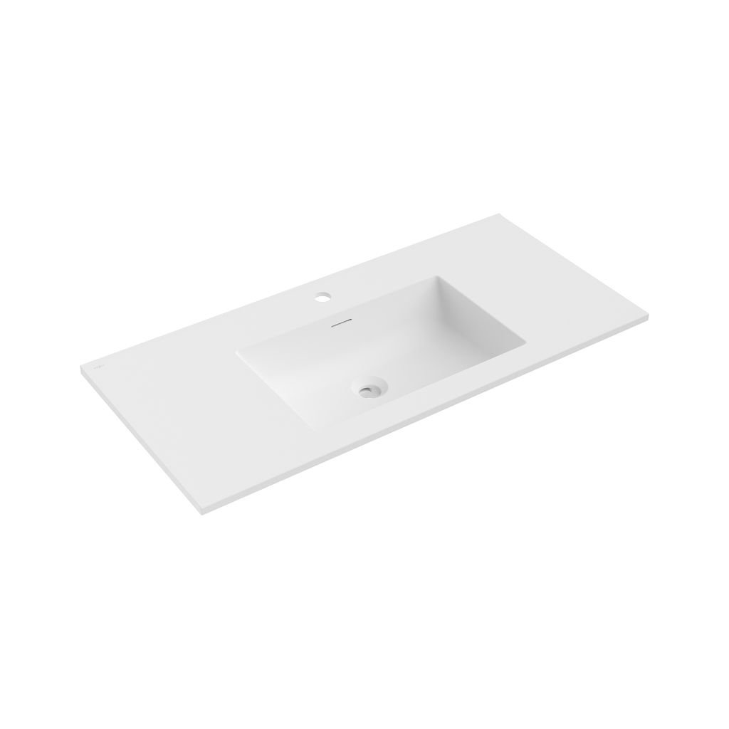 Technické údaje: Rozměry: 101x46,5x16,8 cm Hloubka: 11,9 cm Typ: Zapuštění do desky Barva: bílá matná Materiál: konglomerát Přepadový otvor: Ano Otvor na baterii: AnoDoplňkové parametry