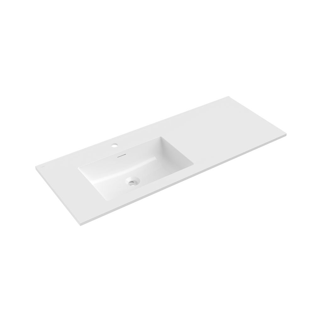 Technické údaje: Rozměry: 121x46,5x16,8 cm Hloubka: 11,9 cm Typ: Zapuštění do desky, levá strana Barva: bílý lesk Materiál: konglomerát Přepadový otvor: Ano Otvor na baterii: AnoDoplňkové parametry