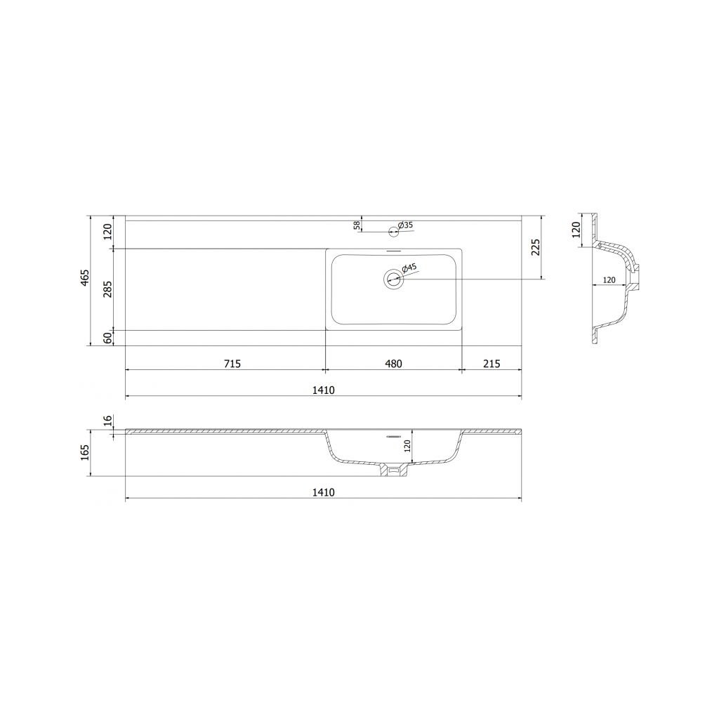 Mexen Otis, umyvadlo na zapuštění 141 x 46,5 cm, pravé, bílá matná, 25181401P