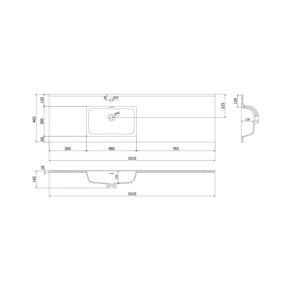 Mexen Otis, umyvadlo na zapuštění 161 x 46,5 cm, levé, bílá lesklá, 25181600L