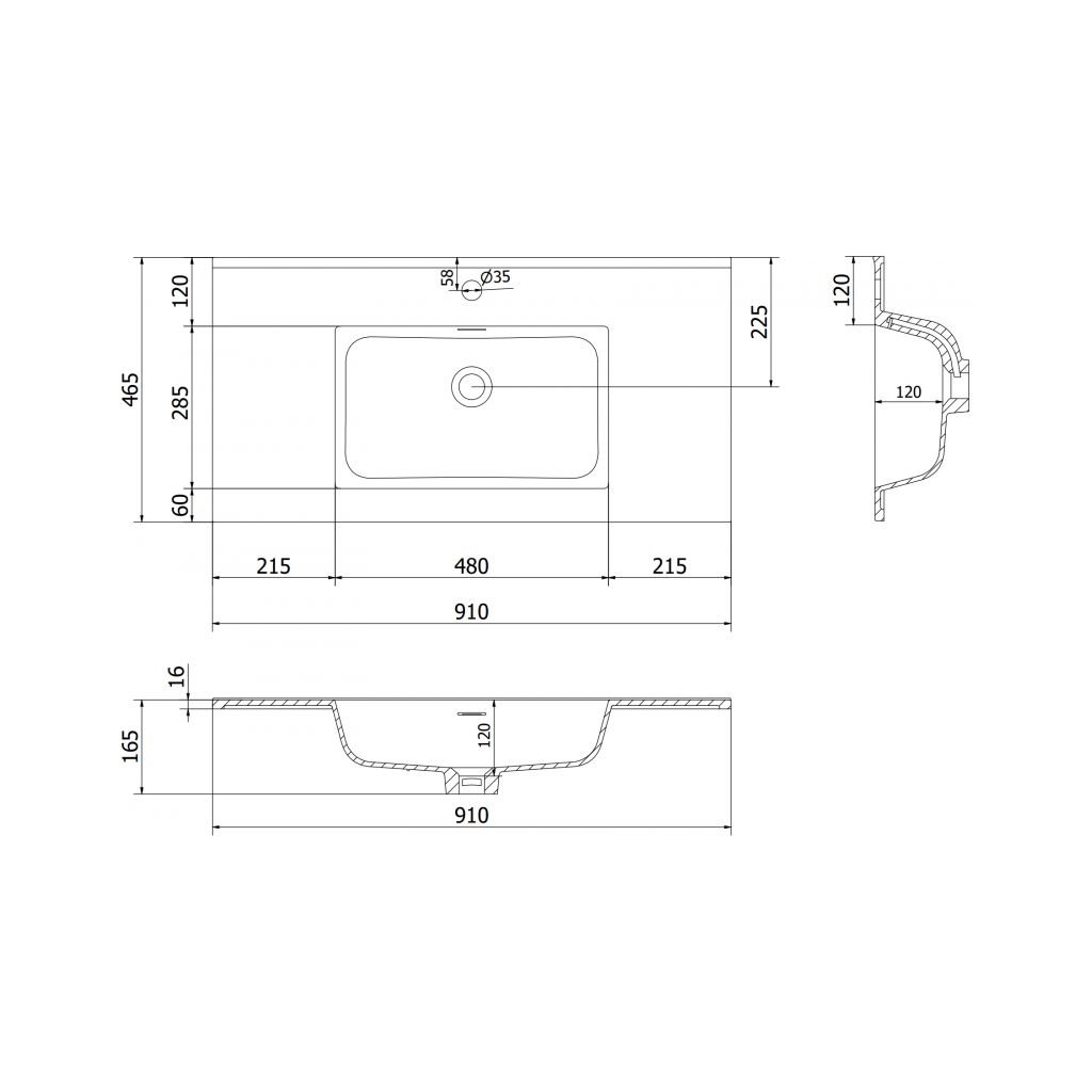 Technické údaje: Rozměry: 91x46,5x16,8 cm Hloubka: 11,9 cm Typ: Zapuštění do pracovní desky Barva: černá matná Materiál: konglomerát Přepadový otvor: Ano Otvor na baterii: AnoDoplňkové parametry
