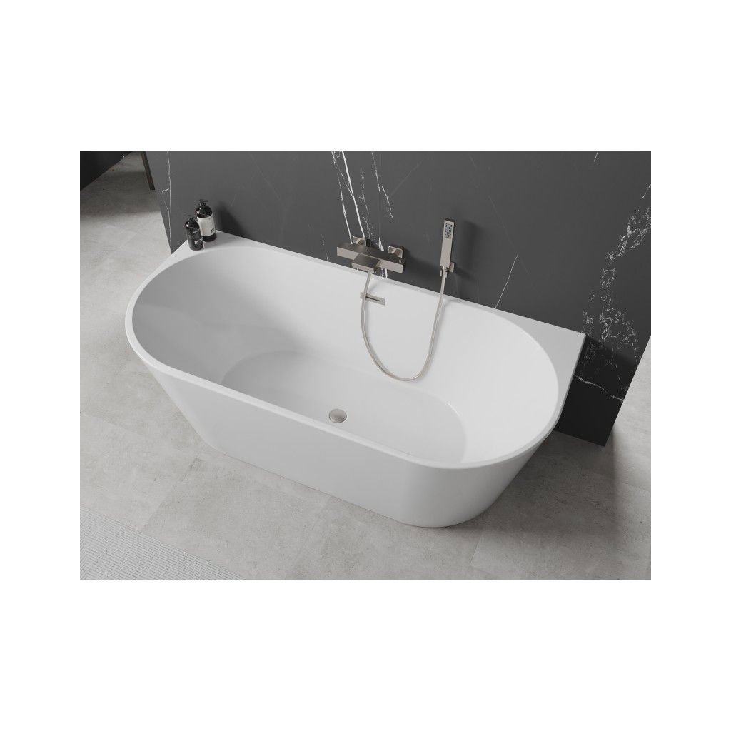 Mexen Oval, volně stojící nástěnná vana 140 x 75 cm, bílá, broušená ocel přepad, 52671407500-97