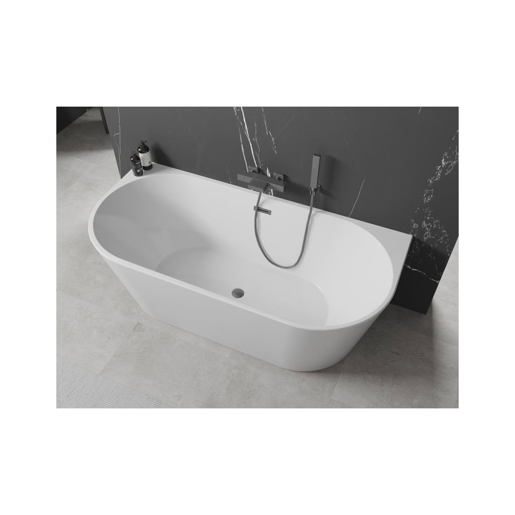 Mexen Oval, volně stojící nástěnná vana 140 x 75 cm, bílá, broušený grafit přepad, 52671407500-95
