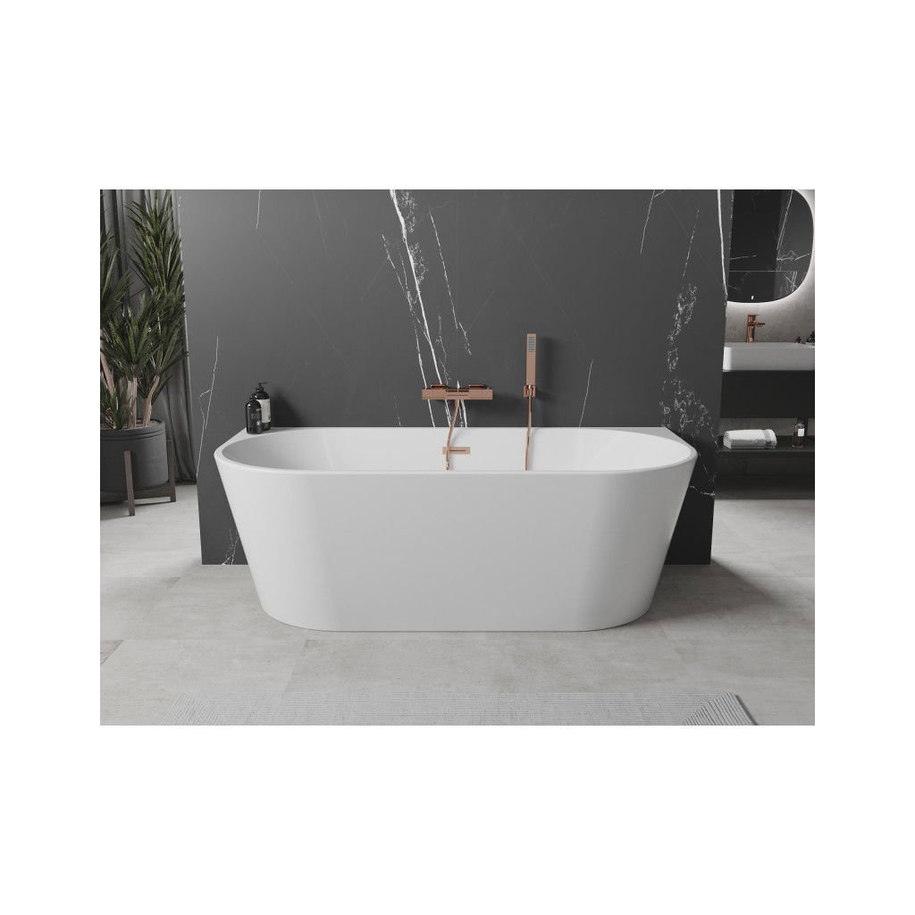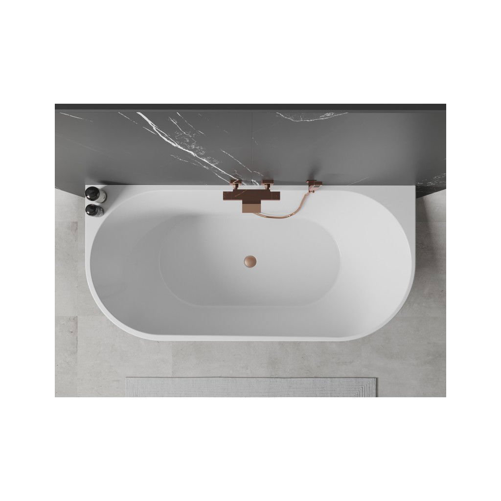Mexen Oval, volně stojící nástěnná vana 150 x 75 cm, bílá, měděný přepad, 52671507500-65