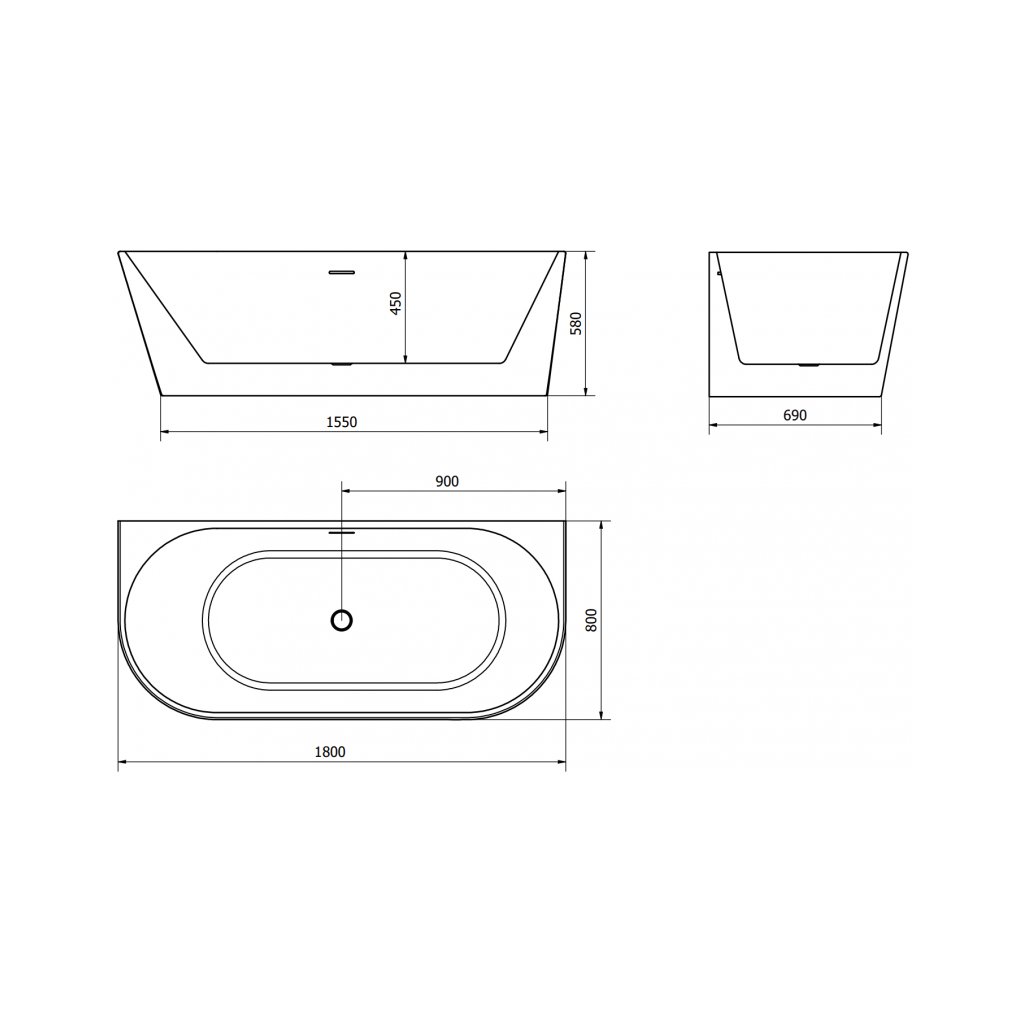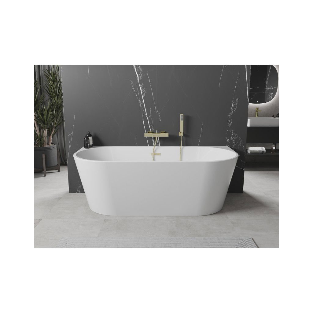 Mexen Oval, volně stojící nástěnná vana 180 x 80 cm, bílá, zlatý matný přepad, 52671808000-55