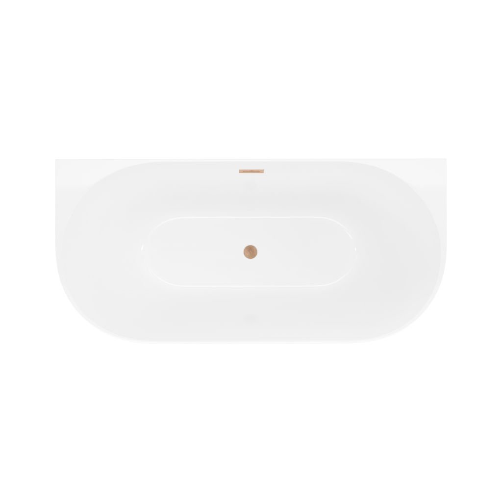Mexen Oval Slim, volně stojící vana ke stěně 170 x 80 cm, bílá lesklá, měděná matná přepad, 52661708000-65