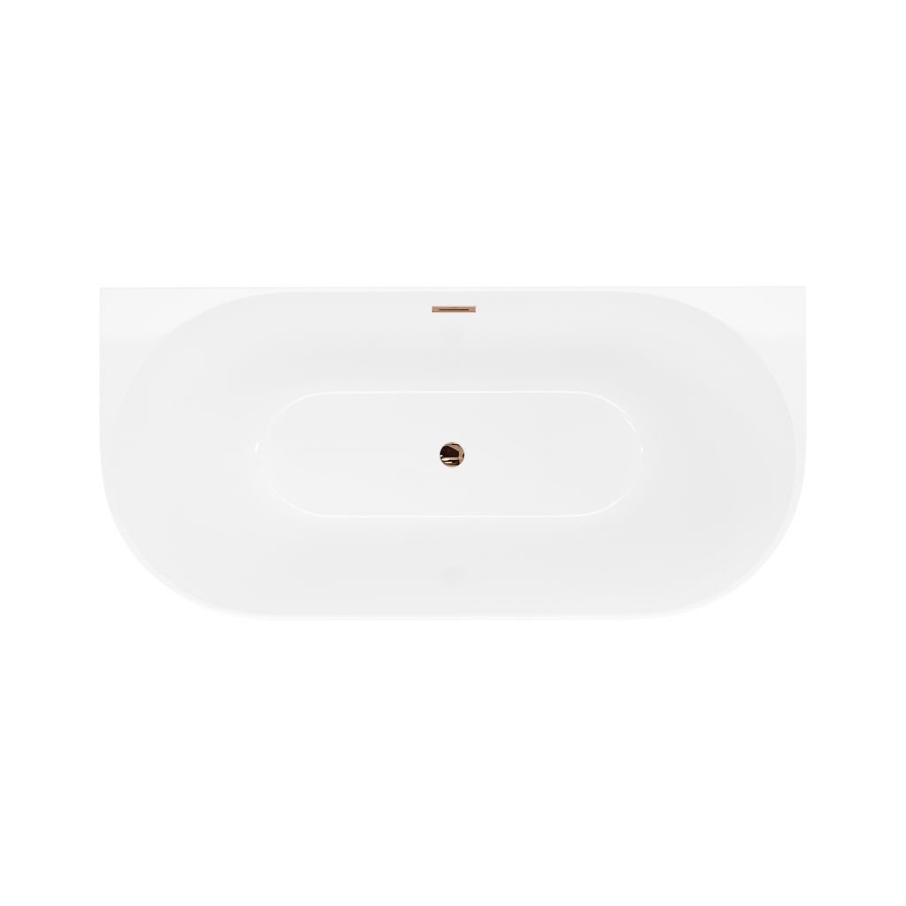 Mexen Oval Slim, volně stojící vana ke stěně 170 x 80 cm, bílá lesklá, růžové zlato přepad, 52661708000-60