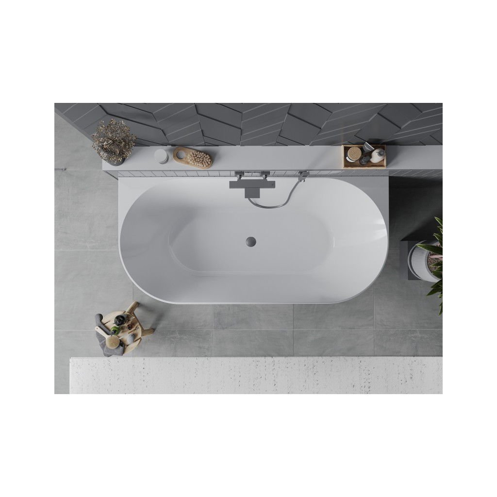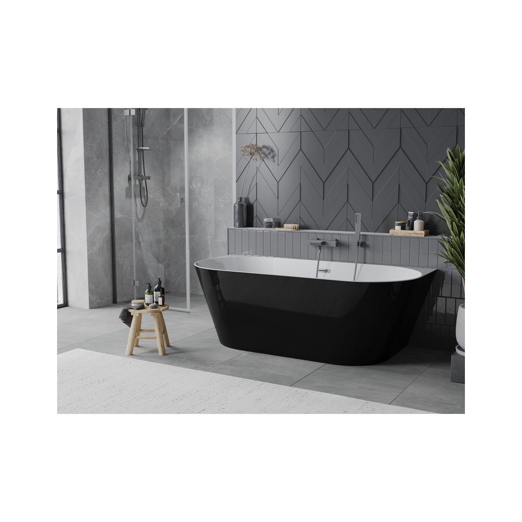 Mexen Oval Slim, volně stojící vana ke zdi, 170 x 80 cm, bílá-černá, broušený grafit přepad, 52661708075-66