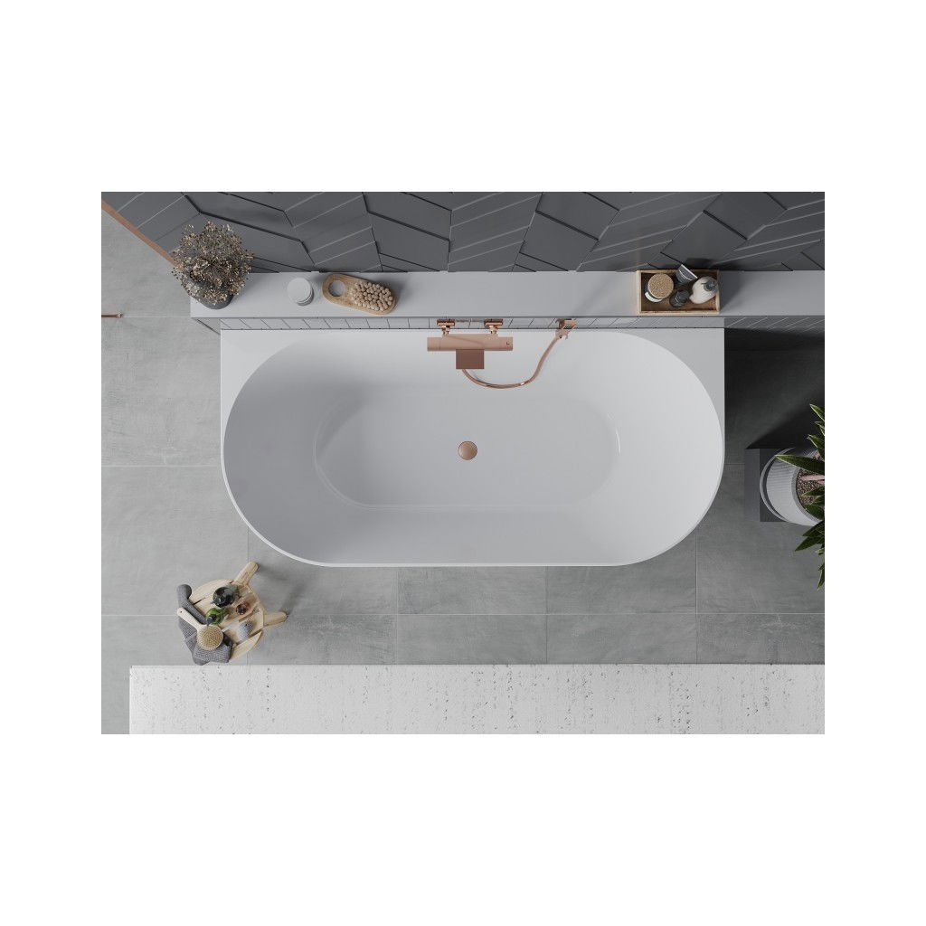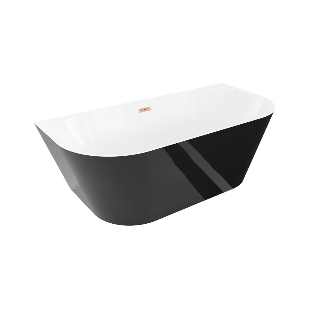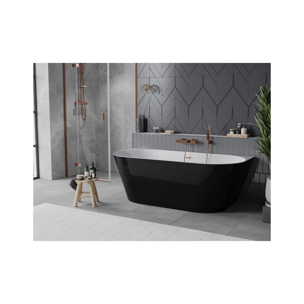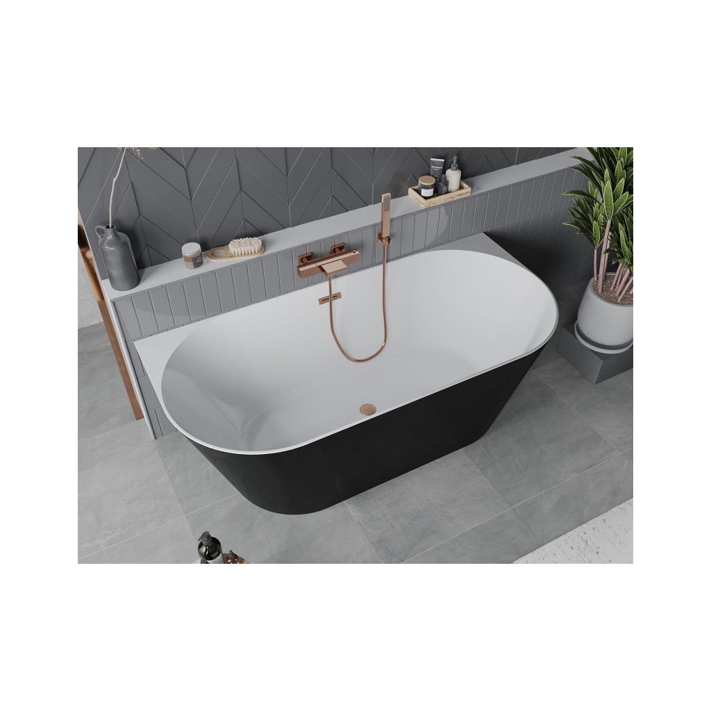 Mexen Oval Slim, volně stojící vana ke zdi, 170 x 80 cm, bílá-černá, měděný matný přepad, 52661708075-65
