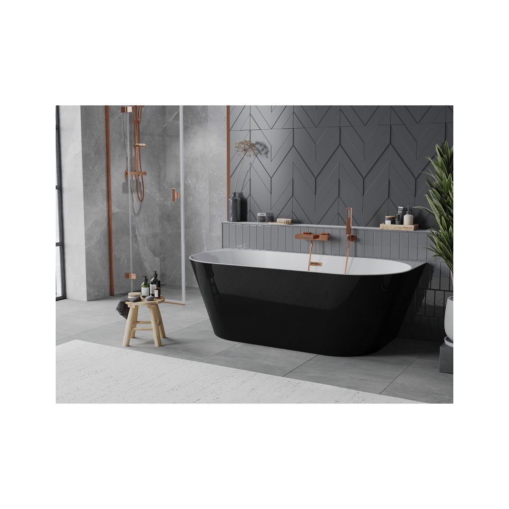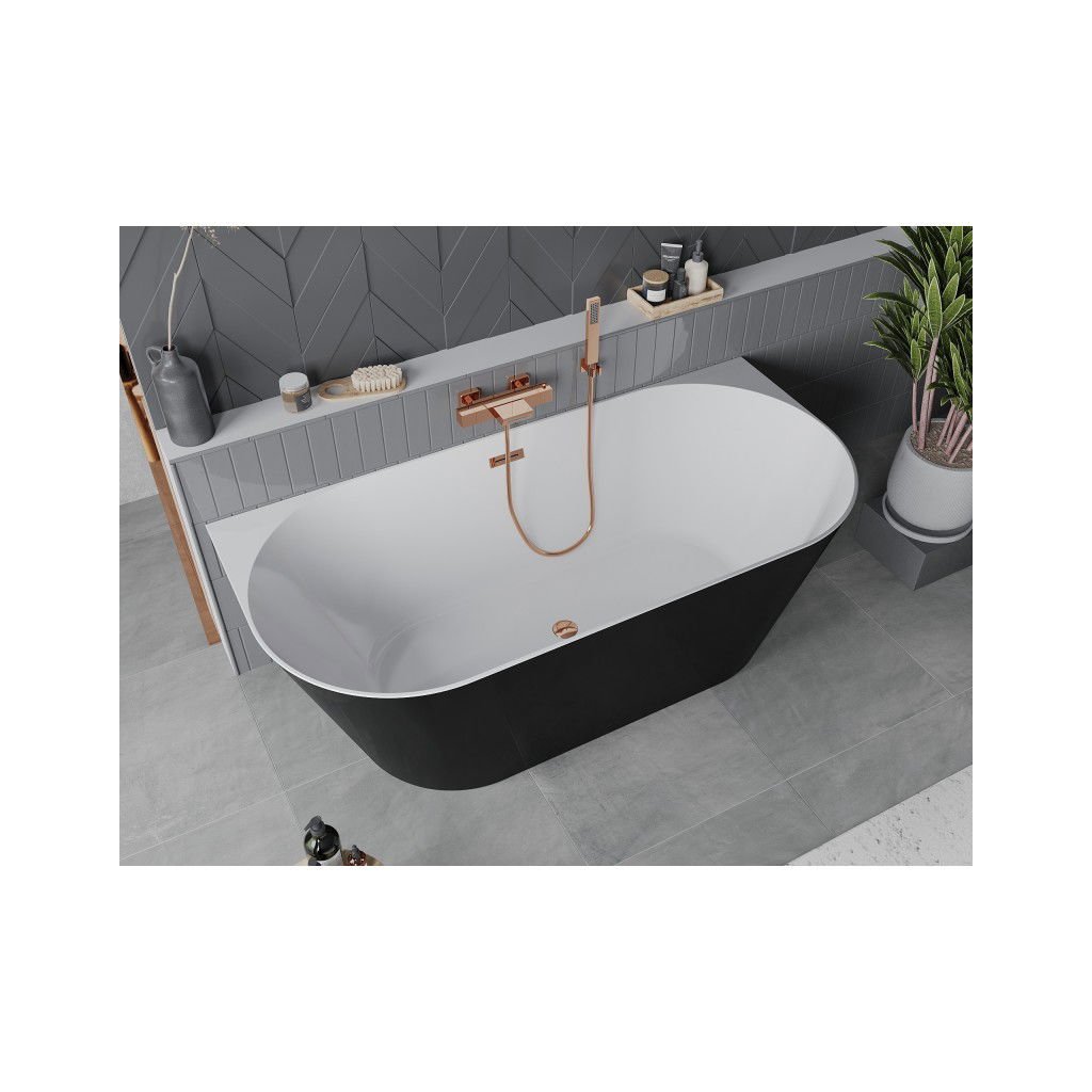 Mexen Oval Slim, volně stojící vana ke zdi, 170 x 80 cm, bílá-černá, růžové zlato přepad, 52661708075-60