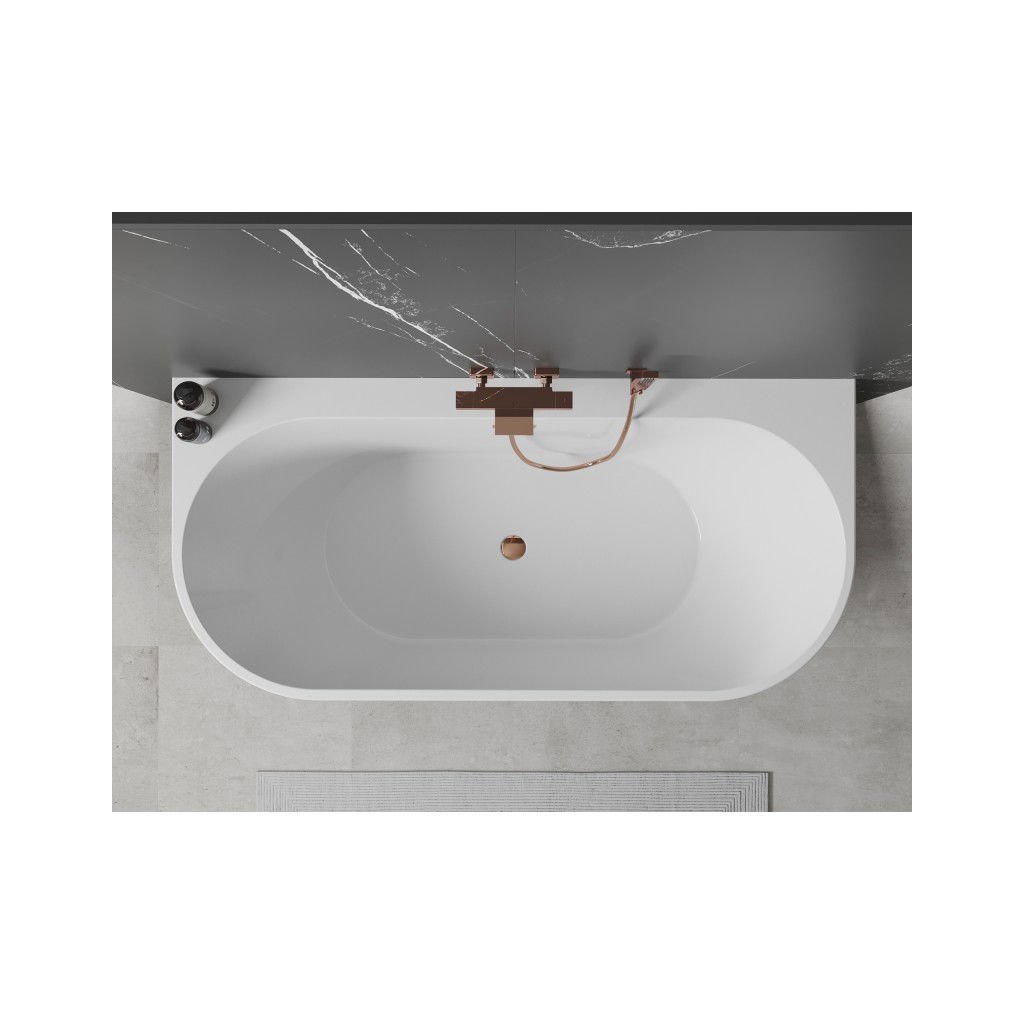 Mexen Oval+, volně stojící vana ke stěně 170 x 80 cm, bílá lesklá, růžové zlato přepad, 52681708000-60