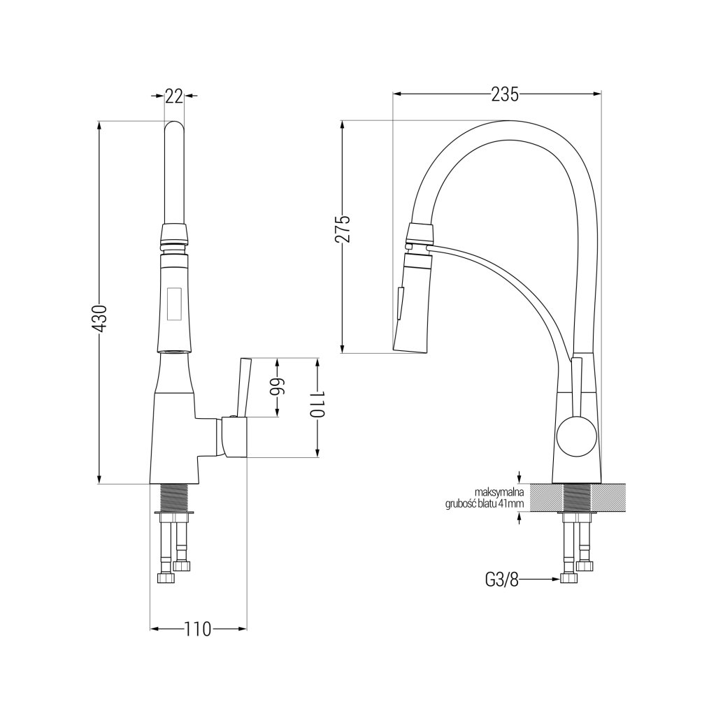 - Typ výtoku: flexibilní (silikonové) s mosazným držákem