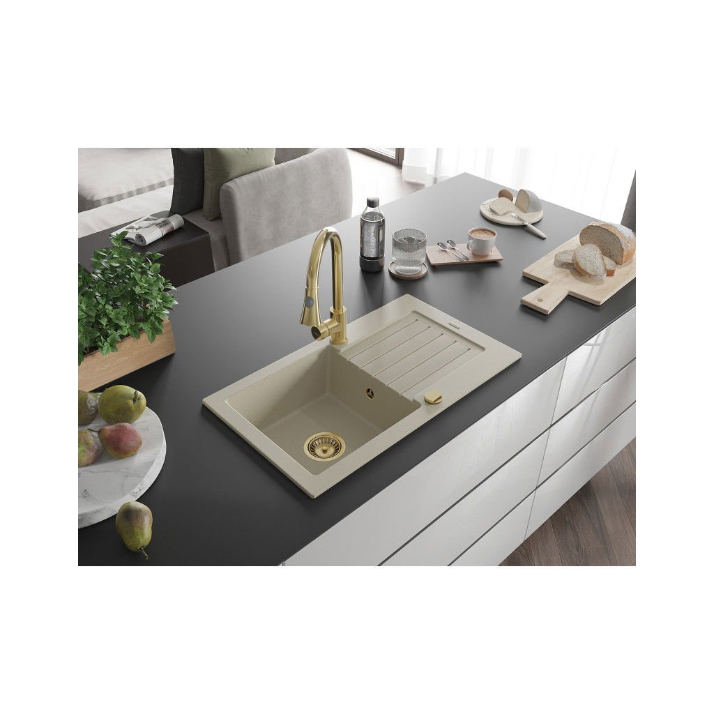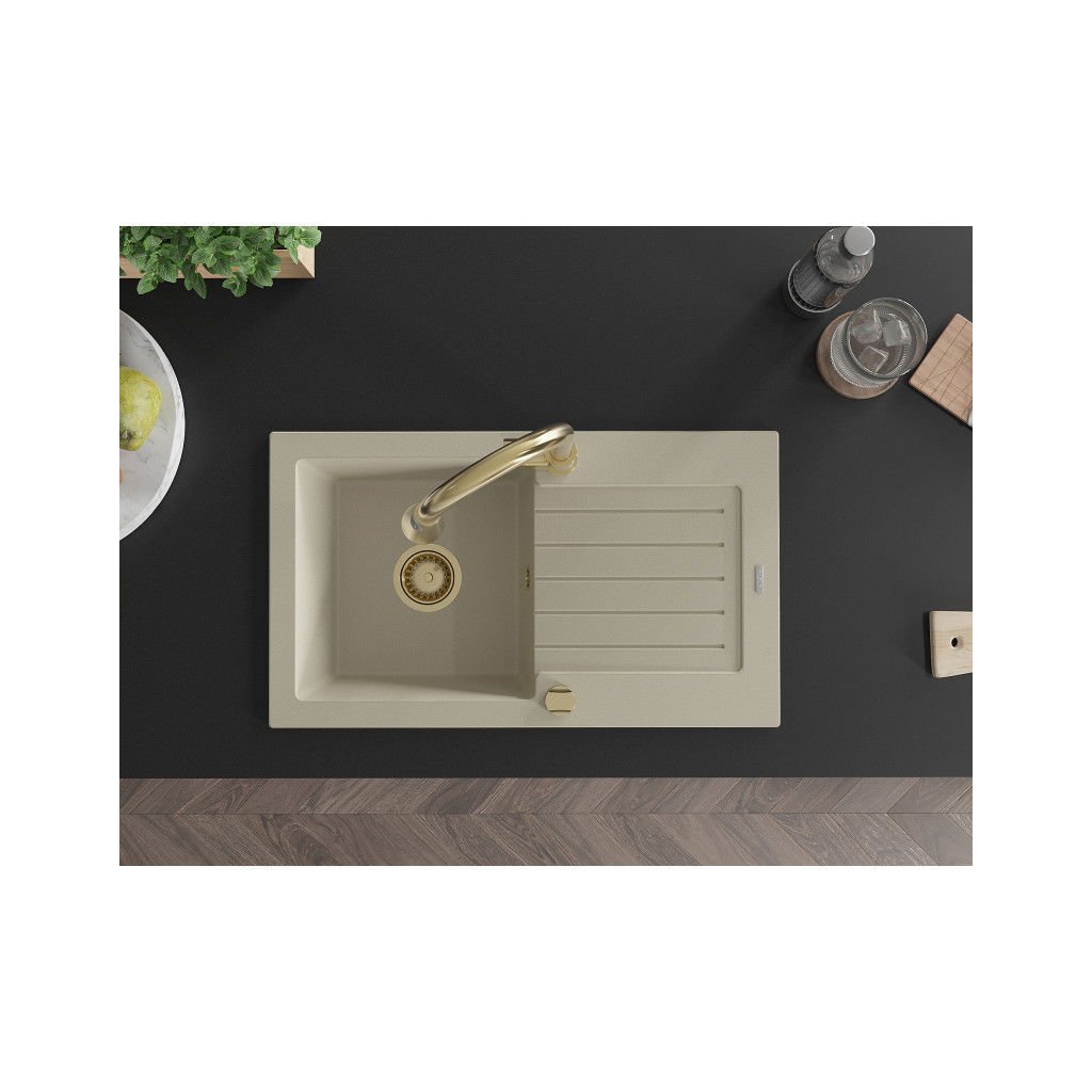 Mexen Pablo, 1-komorový granitový dřez 752x436x161 mm a dřezová baterie Elia, béžová, 6510-69-670101-50