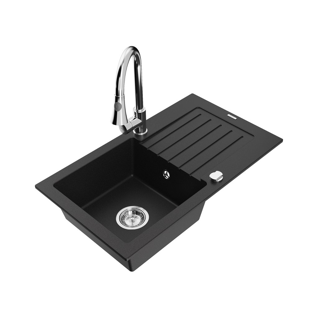 Mexen Pablo, 1-komorový granitový dřez 752x436x161 mm a dřezová baterie Elia, černá, 6510-77-670101-00