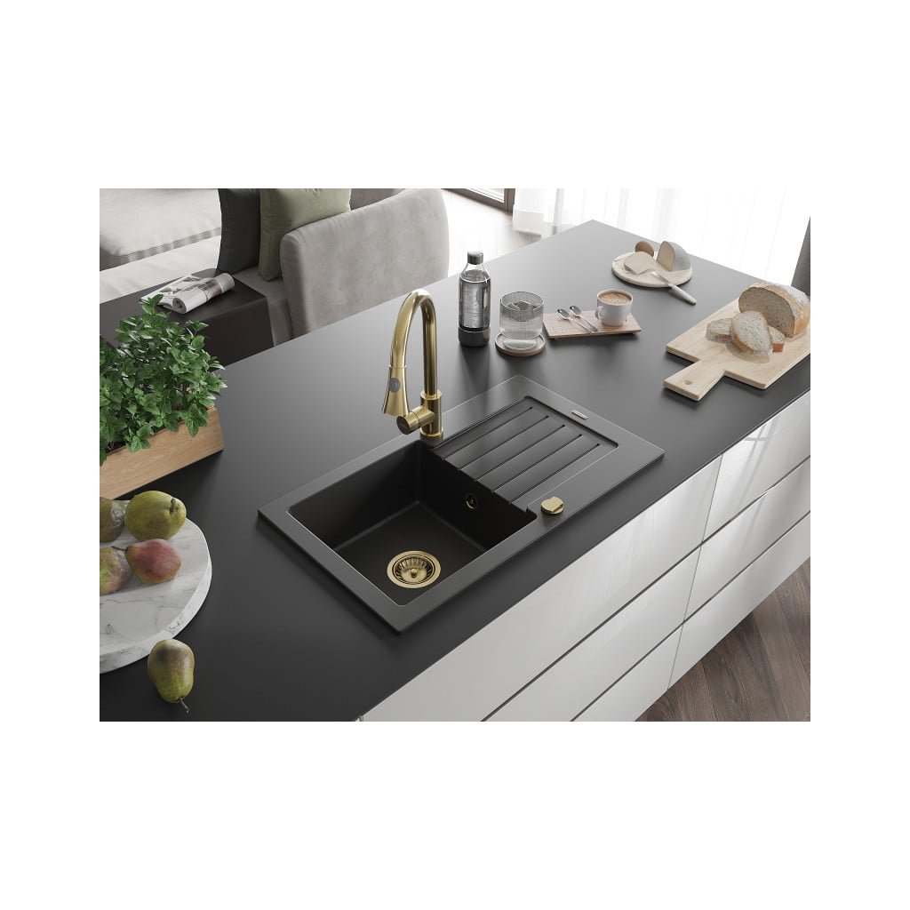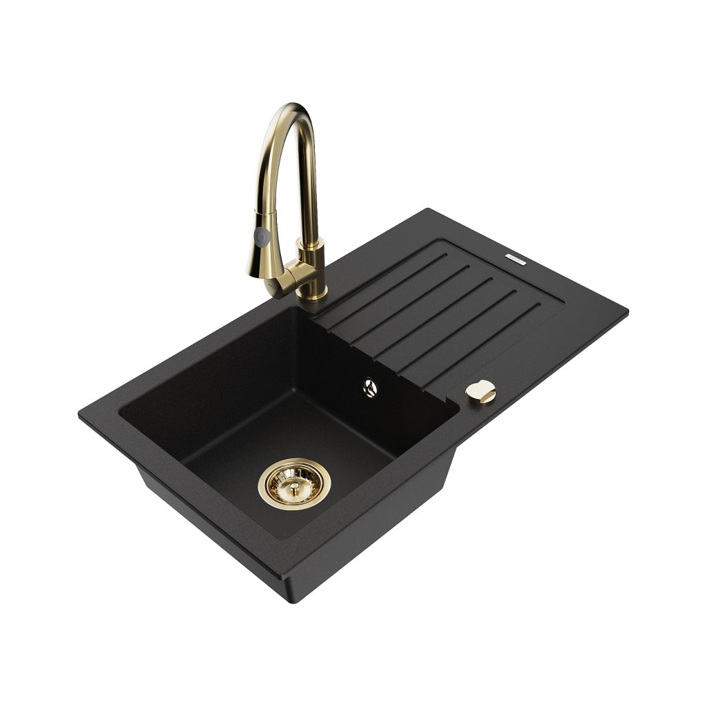 Mexen Pablo, 1-komorový granitový dřez 752x436x161 mm a dřezová baterie Elia, černá, 6510-77-670101-50