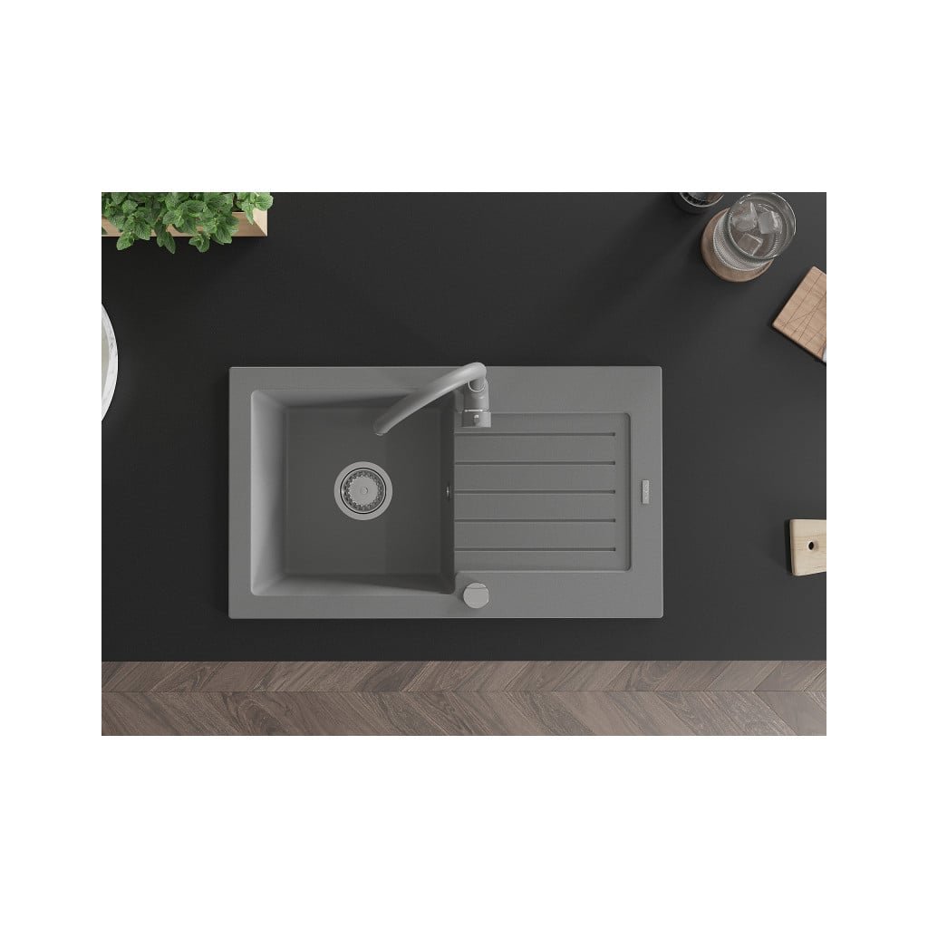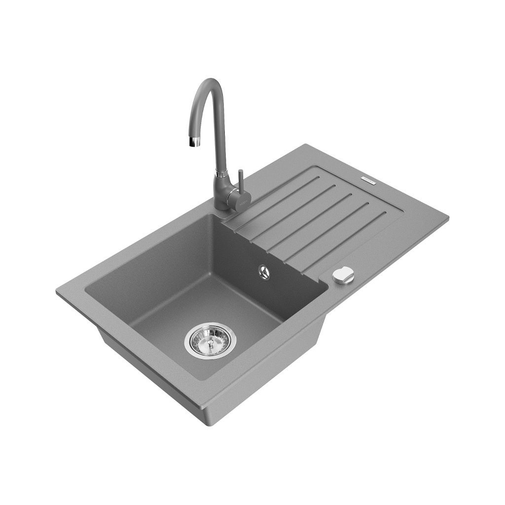 Mexen Pablo, 1-komorový granitový dřez s odkapávačem 75x44 cm a kuchyňskou baterií Telma, šedá, 6510-71-670200-71