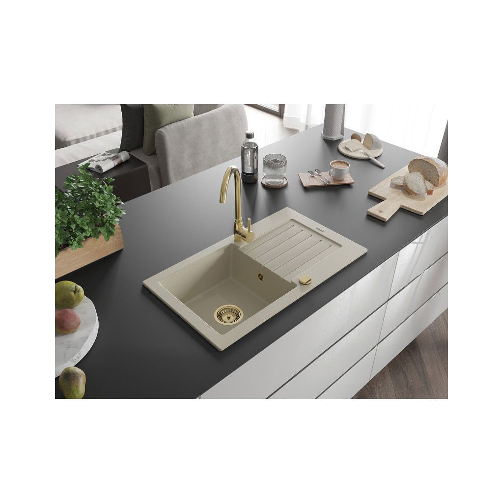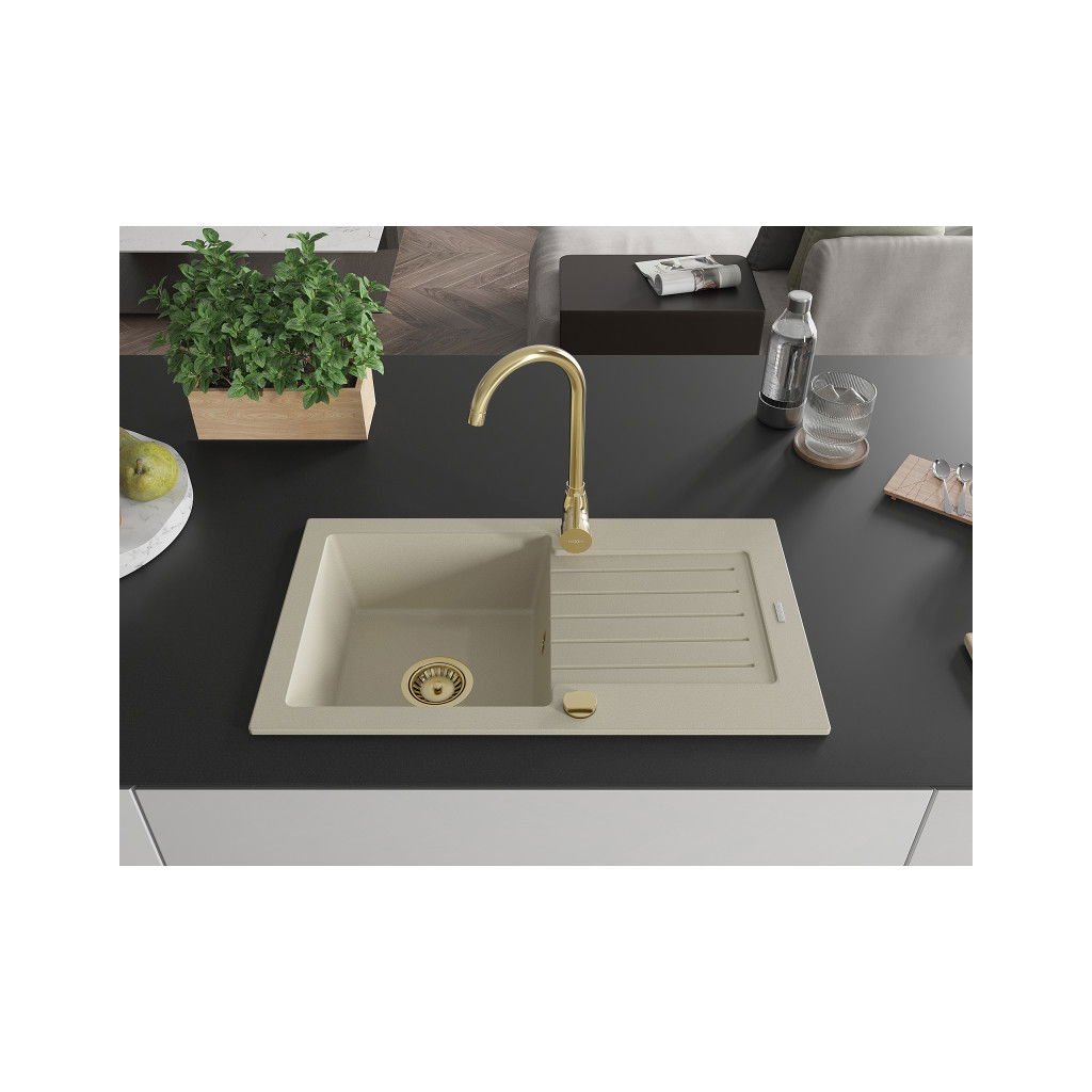 Mexen Pablo, granitový dřez 752x436x161 mm, 1-komorový, béžová se zlatým sifonem, 6510751010-69-G