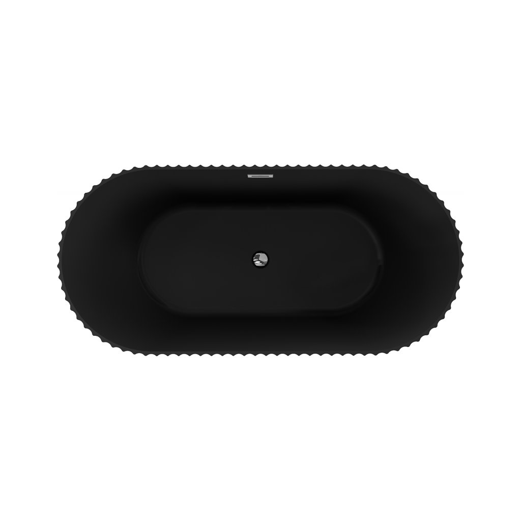 Mexen Paola, volně stojící vana, drážkovaná, 150 x 75 cm, černá matná, chromový přepad, 52721507571-01