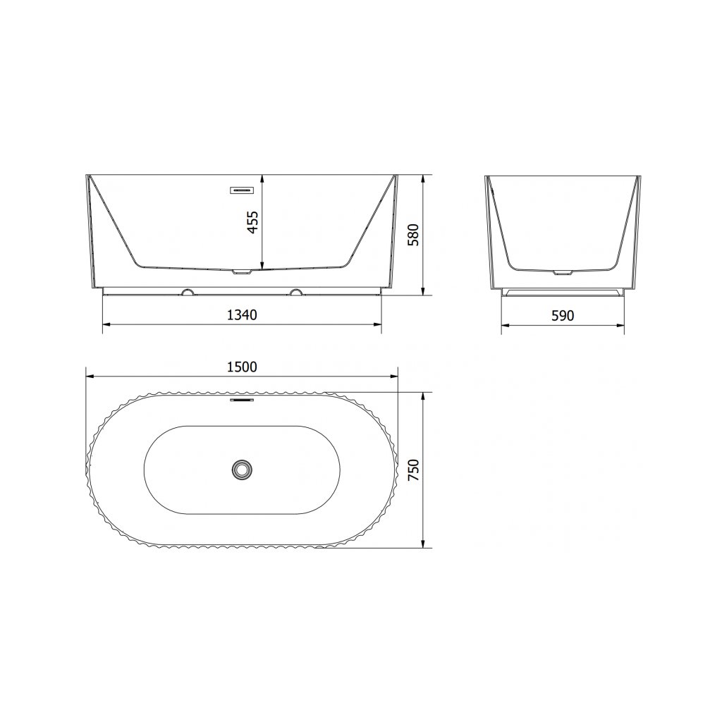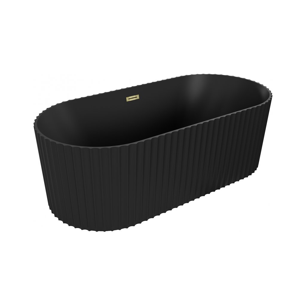 Mexen Paola, volně stojící vana, drážkovaná, 150 x 75 cm, černá matná, zlatý lesklý přepad, 52721507571-50