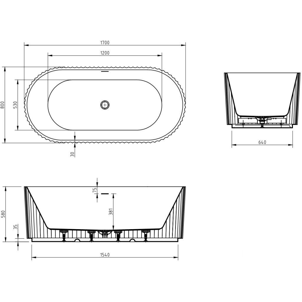 Mexen Paola, volně stojící vana, drážkovaná, 170 x 80 cm, černá matná, 52721708071-SS