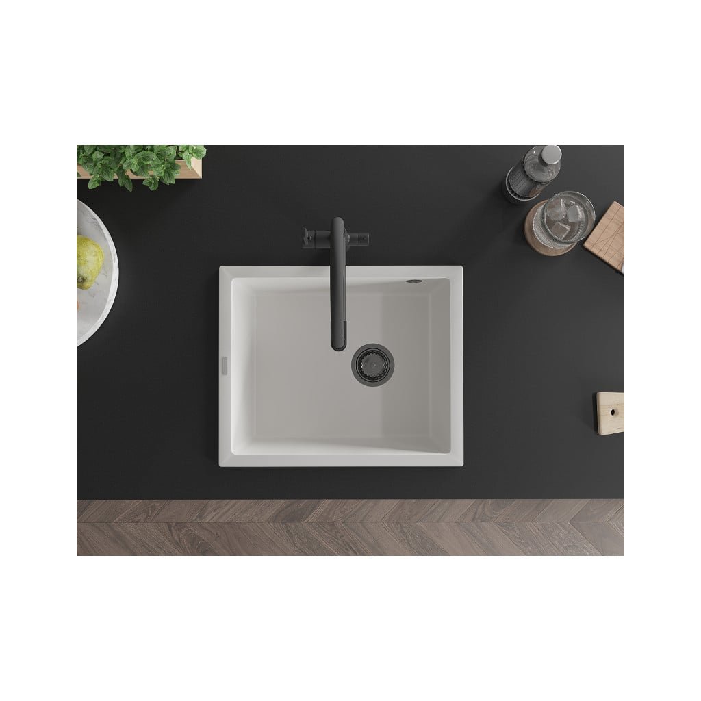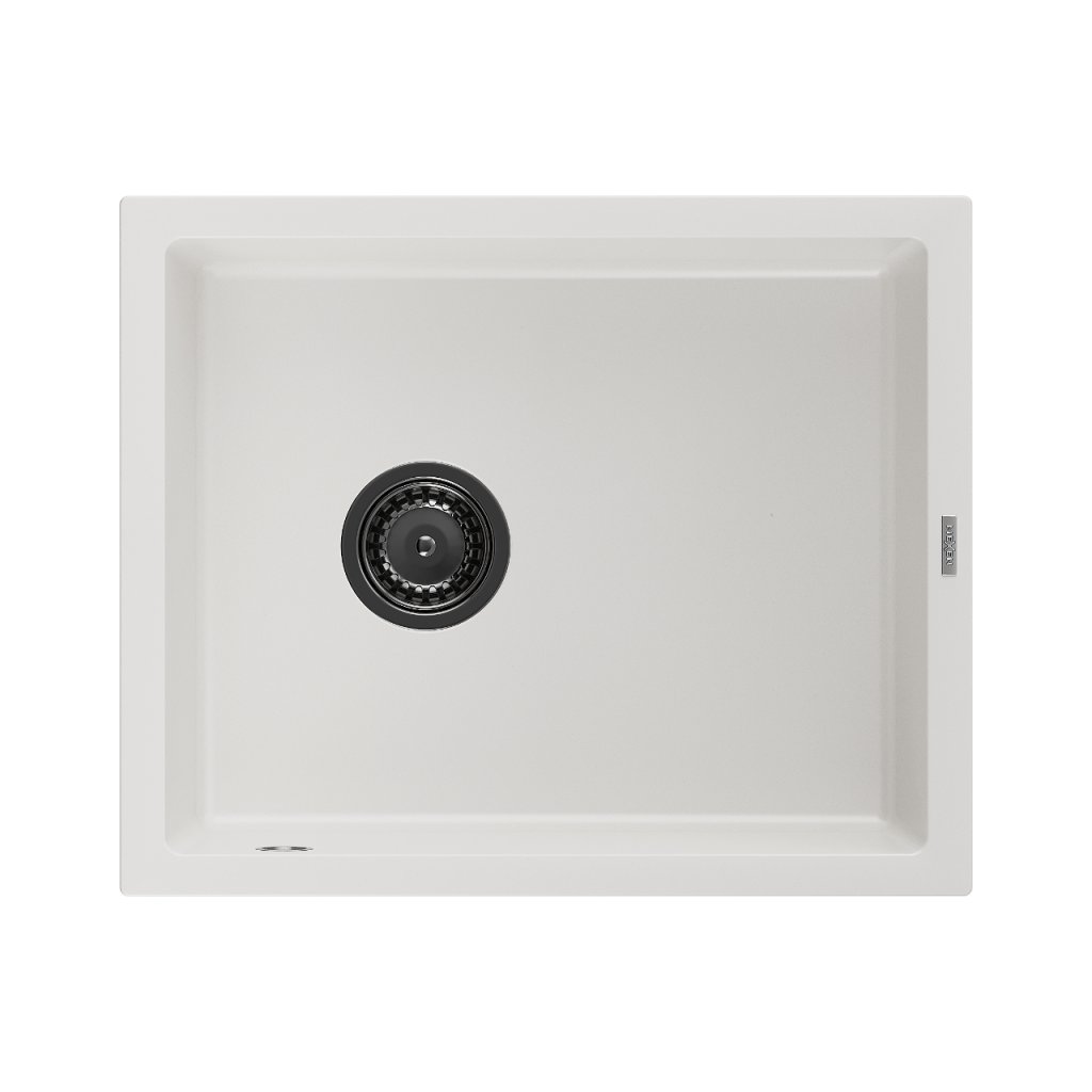 Mexen Pedro, granitový dřez 560x460x200 mm, 1-komorový, bílá s černým sifonem, 6508561000-20-B