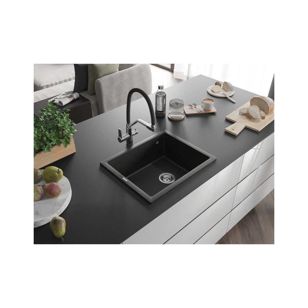 Mexen Pedro - dřez granitový 56,0x46,0cm, 1-komorový, černá-zlatá, 6508561000-75