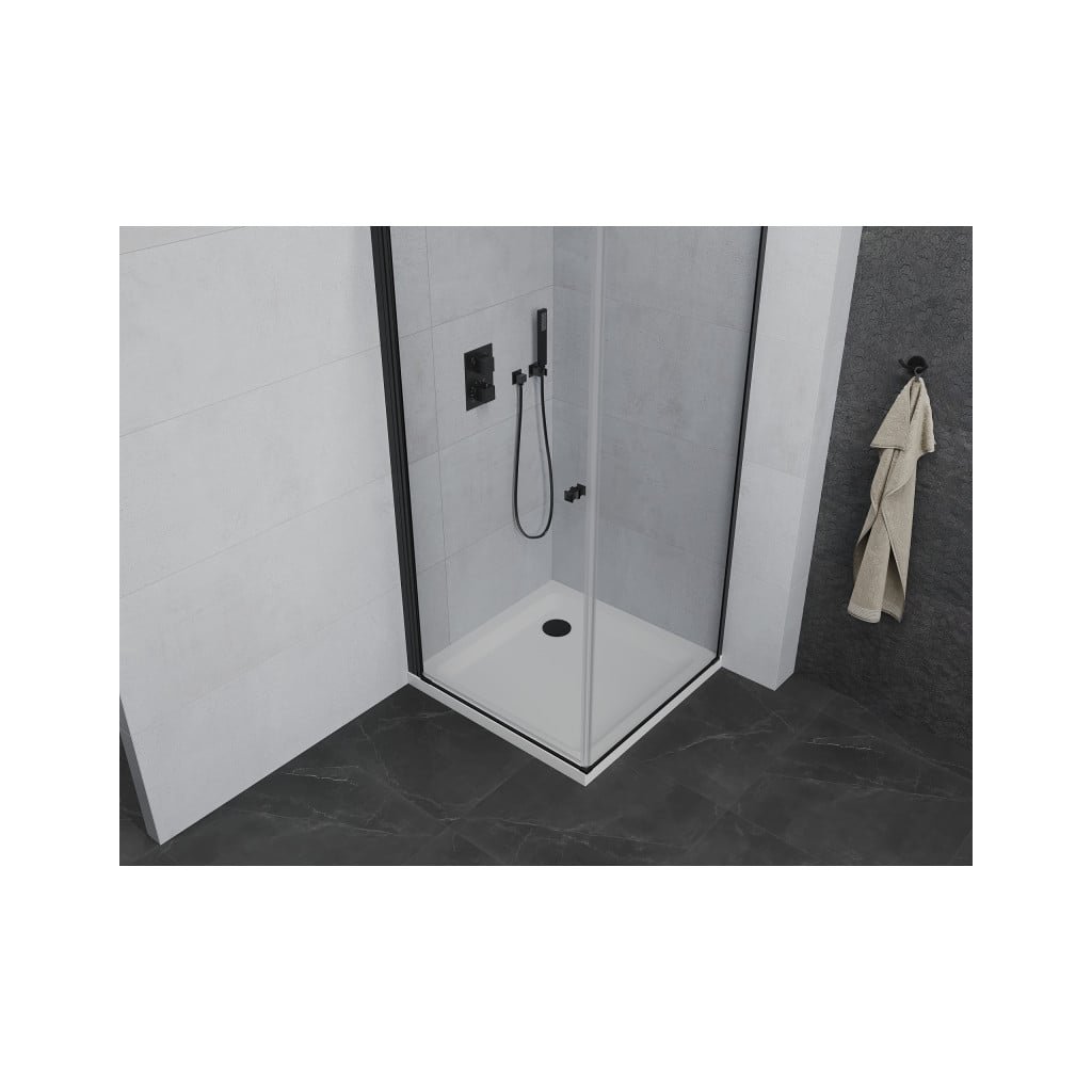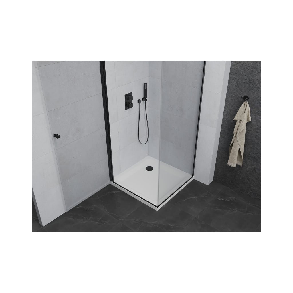Mexen Pretoria, sprchový kout 100 (dveře) x 100 (stěna) cm, 6mm čiré sklo, černý profil + bílá sprchová vanička, 852-100-100-70-00-4010B