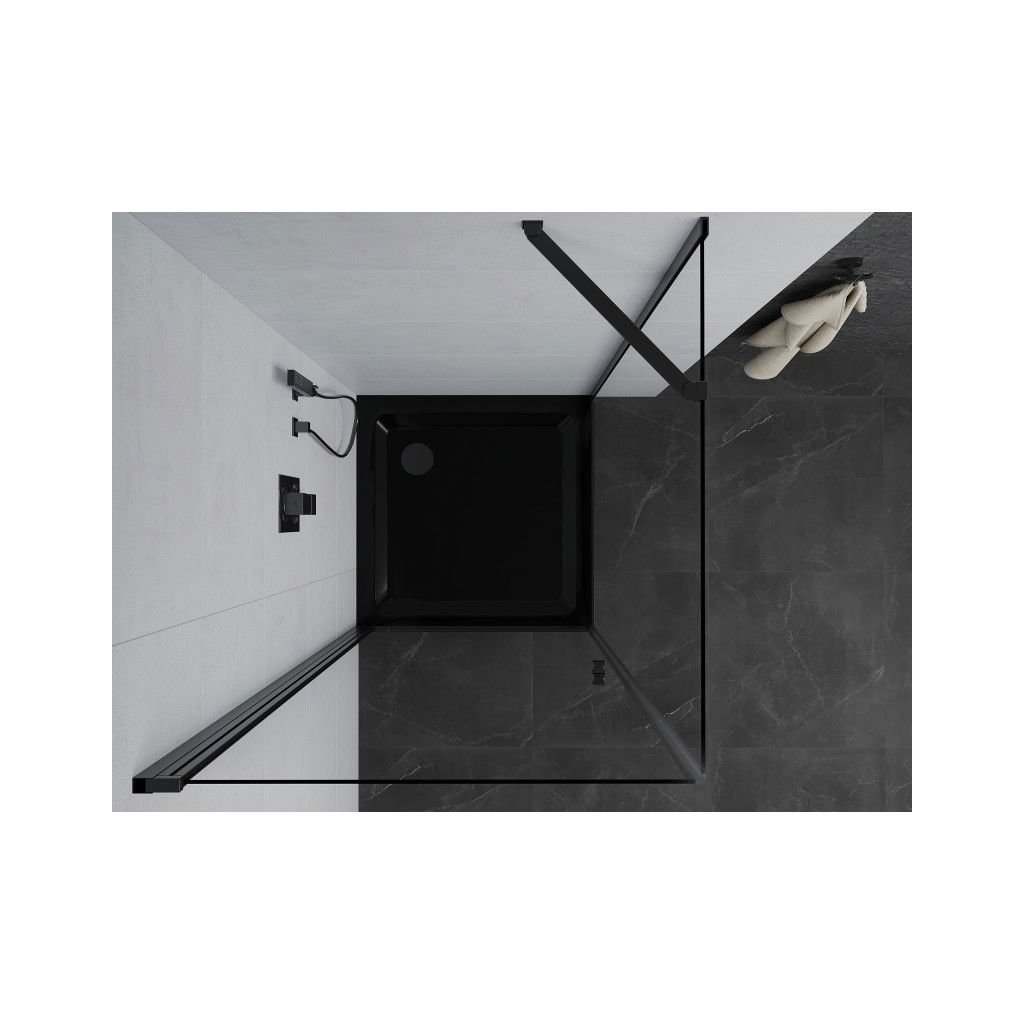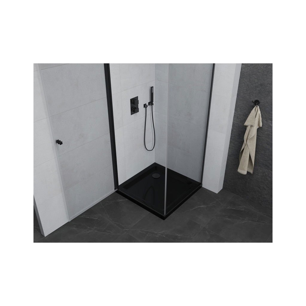 Mexen Pretoria, sprchový kout 100 (dveře) x 100 (stěna) cm, 6mm čiré sklo, černý profil + černá sprchová vanička, 852-100-100-70-00-4070B