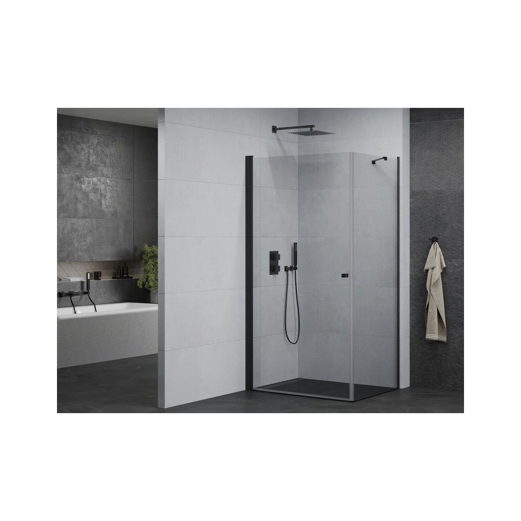 Skvělá volba do každé koupelny. Elegantní sprchový kout je vyroben ze 6 mm silného tvrzeného čirého skla v průchodu procedury. Aplikovaná povrchová úprava skla zajišťuje maximální komfort všem uživatelům. Tato technologie zaručuje jedinečné vlastnosti, aby se zabránilo kontaminaci skla – povrch je pouze opláchnut vodou. Kout je osazen v černých hliníkových profilech a je vybaven těsněním, které zabraňuje úniku vody mimo sprchu kout. Dveře sprchového koutu jsou křídlové s možností otevírání dovnitř nebo ven (nutno zvolit při montáži). K otevírání slouží decentní kovová rukojeť. Dokonalou stabilitu sprchového koutu zajišťuje kotvící rameno, které je součástí produktu.