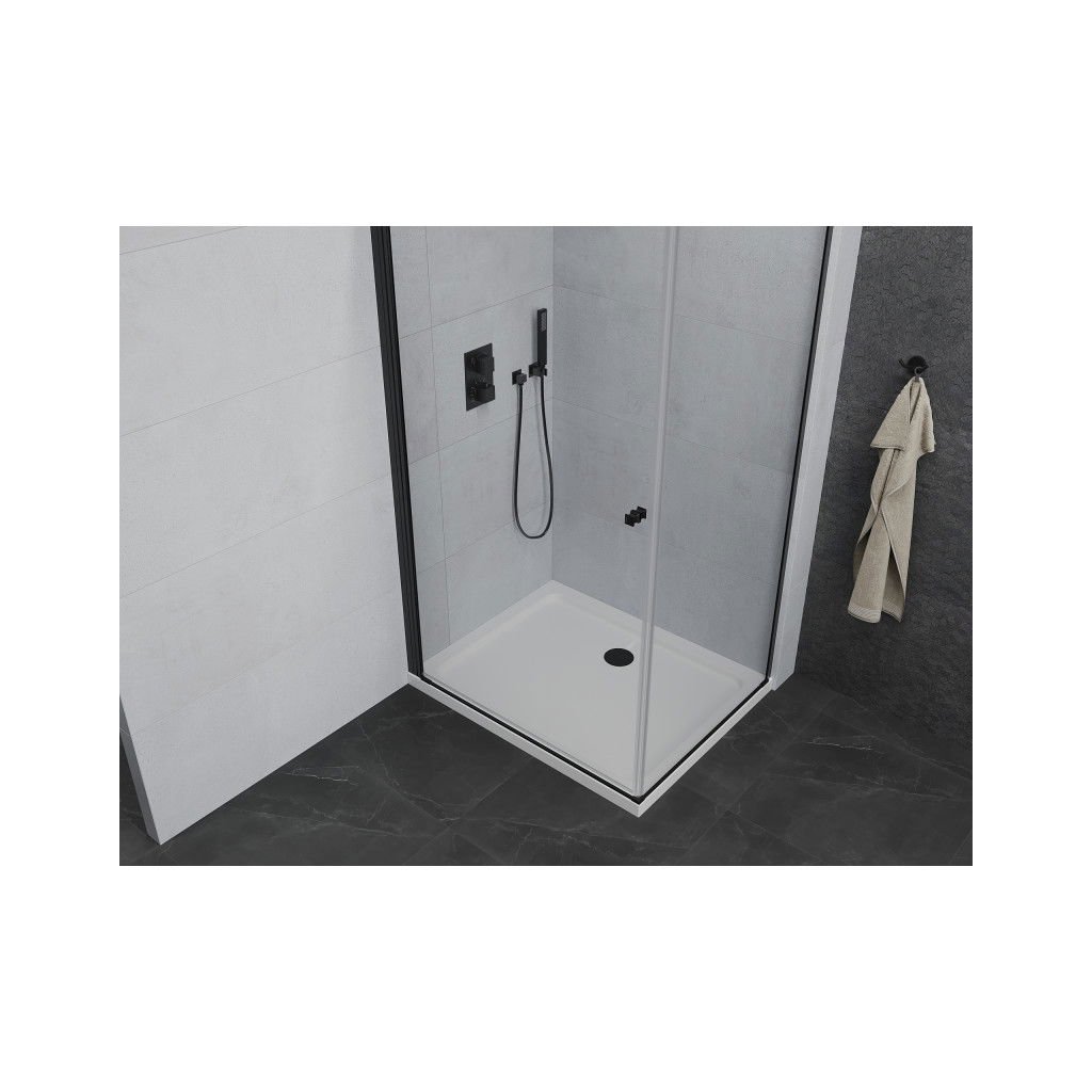 Elegantní sprchový kout je vyroben ze 6 mm silného tvrzeného skla v průchodu procedury. Aplikovaná povrchová úprava skla zajišťuje maximální komfort všem uživatelům. Tato technologie zaručuje jedinečné vlastnosti, aby se zabránilo kontaminaci skla – povrch stačí jen opláchnout vodou. Kout je osazen v černých hliníkových profilech a je vybaven těsněním, které zabraňuje úniku vody mimo sprchu kout. Dveře sprchového koutu jsou křídlové s možností otevírání dovnitř nebo ven (nutno zvolit při montáži). K otevírání slouží decentní kovová rukojeť. Dokonalou stabilitu sprchového koutu zajišťuje kotvící rameno, které je součástí produktu. Sprchový kout je univerzální – při instalaci se rozhodnete otevřít vpravo nebo doleva. Profilové lišty umožňují regulaci pro vyrovnání případných drobných nerovností stěn. Sprchový kout lze instalovat na sprchovou vaničku nebo přímo na dlažbu.